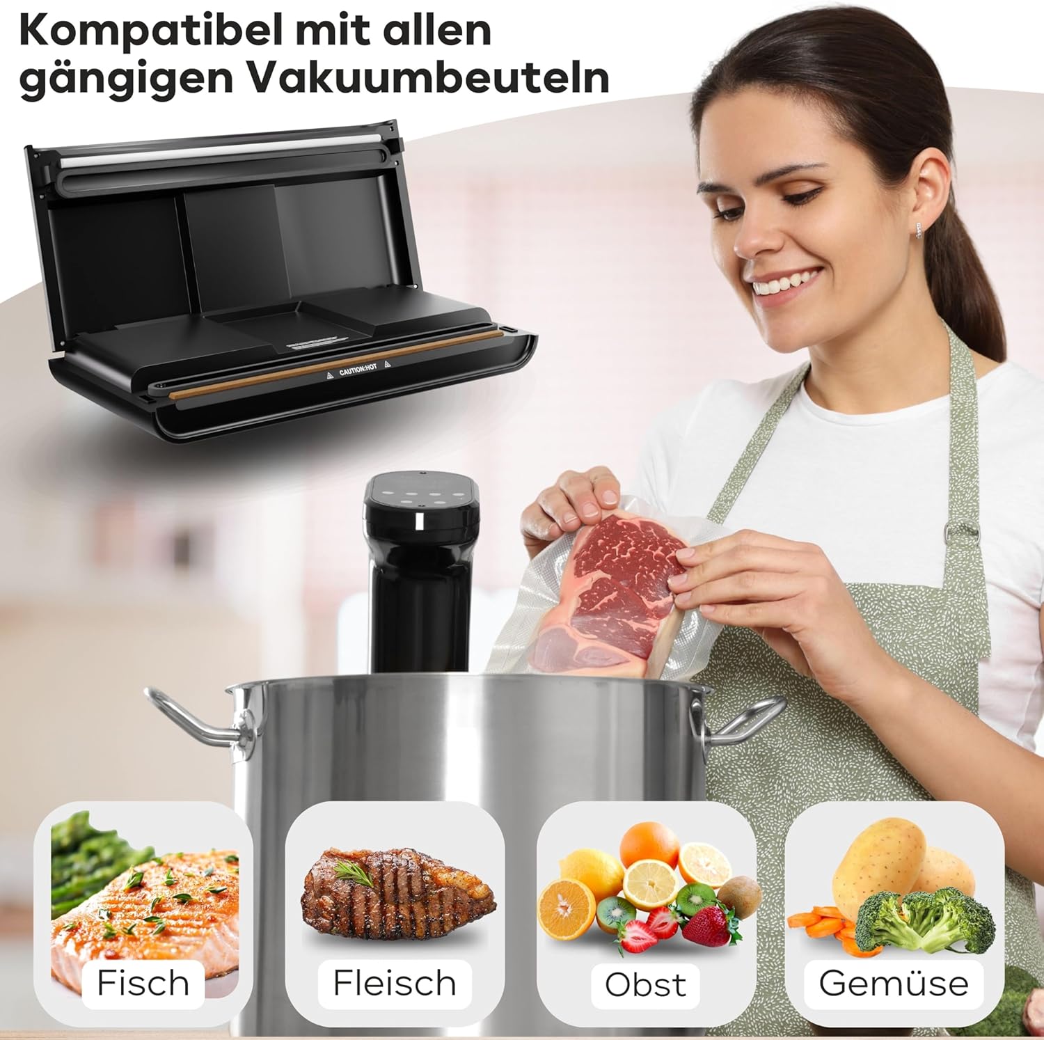 خياطة واسعة ومتينة للتخزين الآمن – تعديل إلكتروني لمستوى الشفط، مناسب أيضًا للأطعمة الحساسة