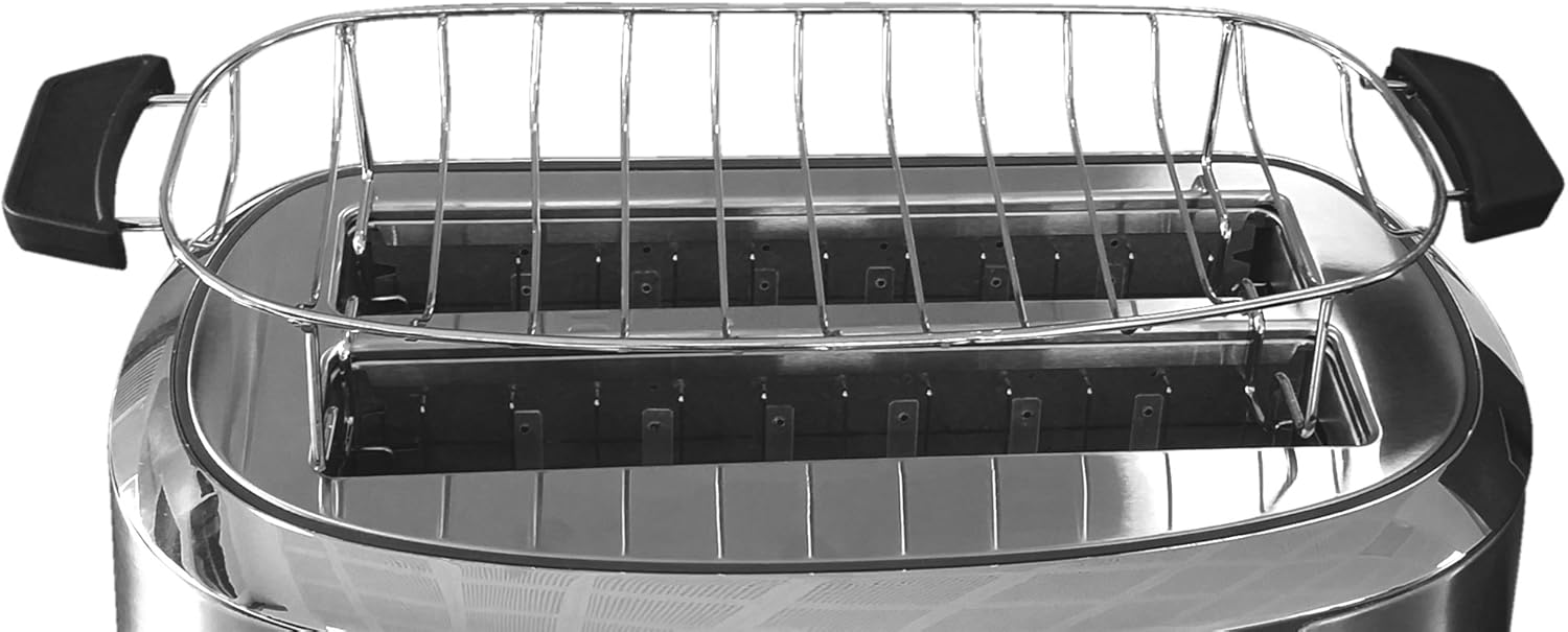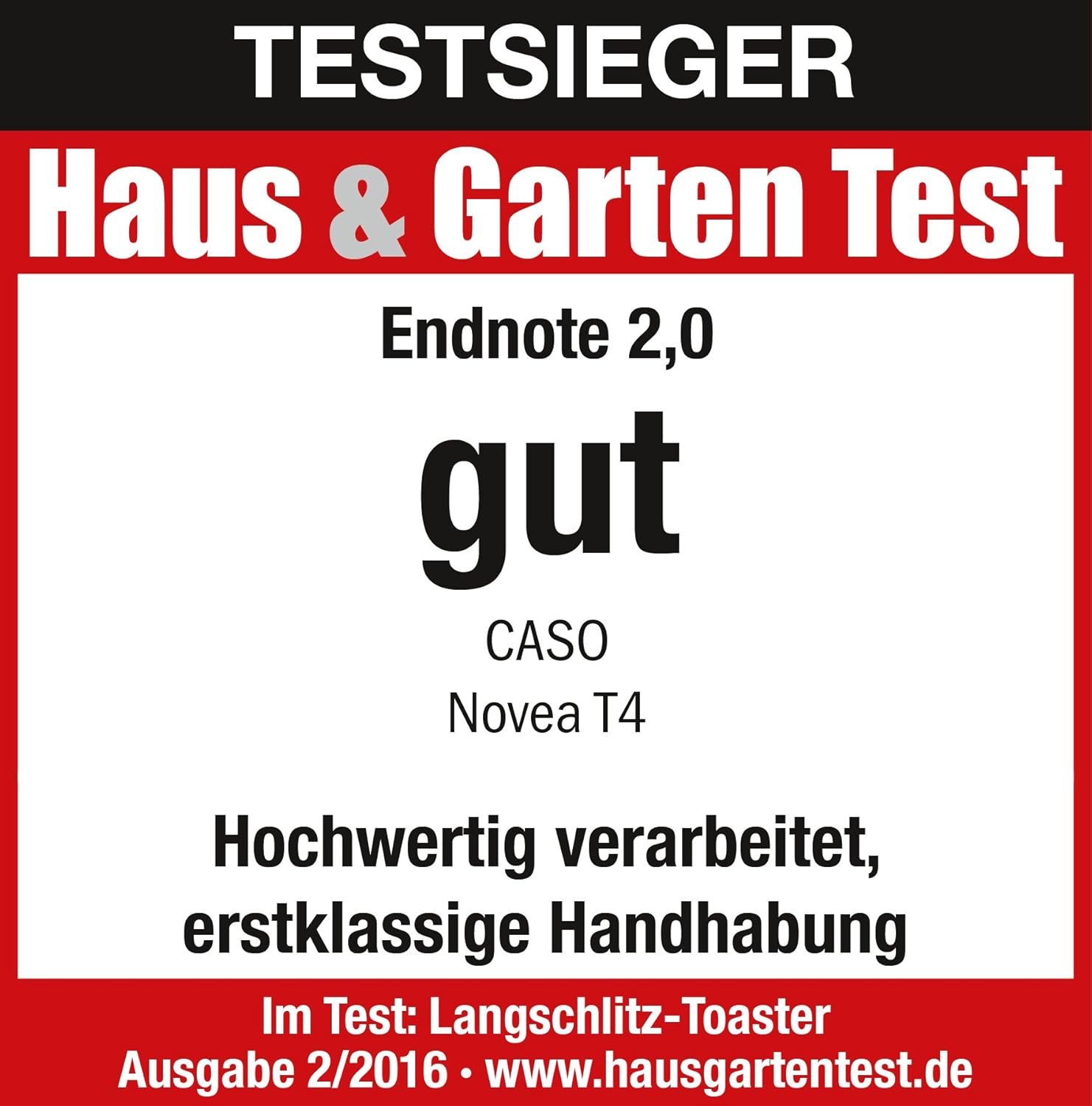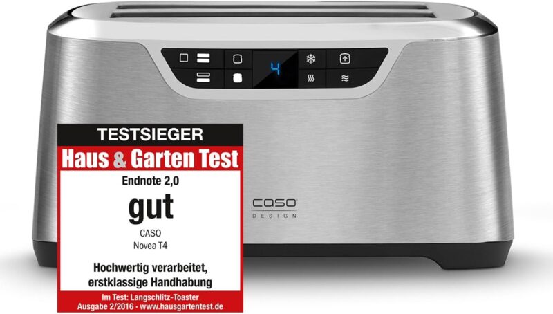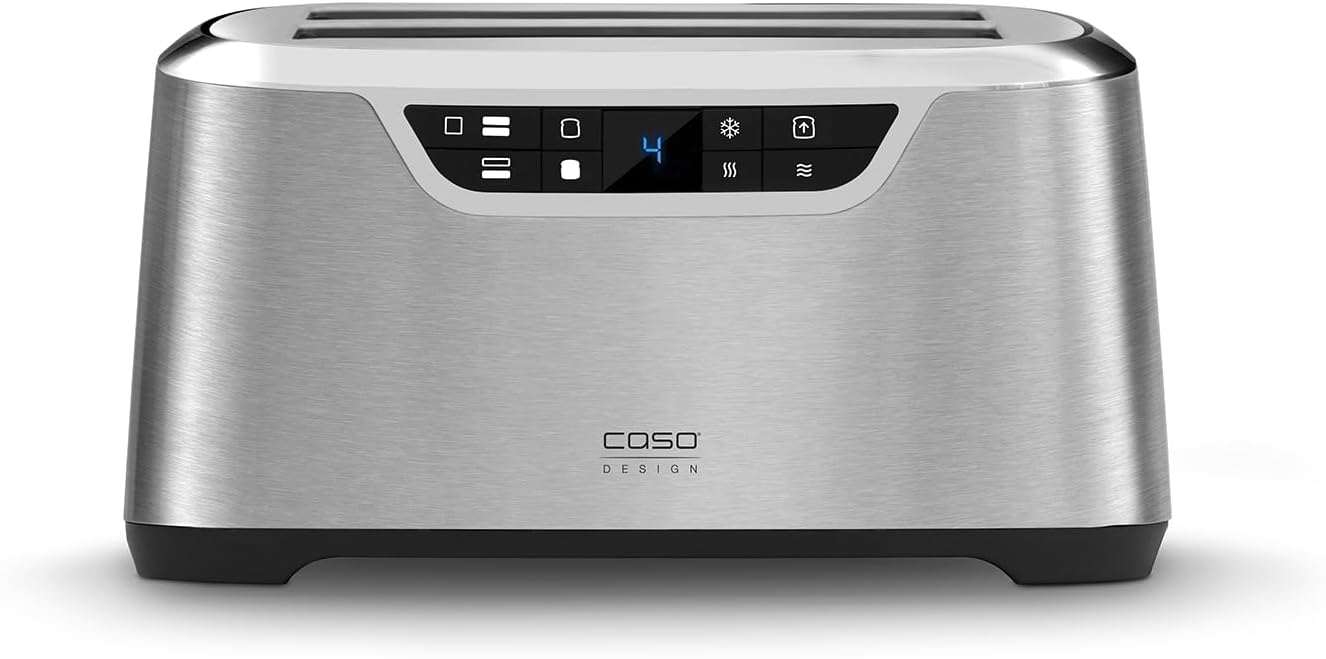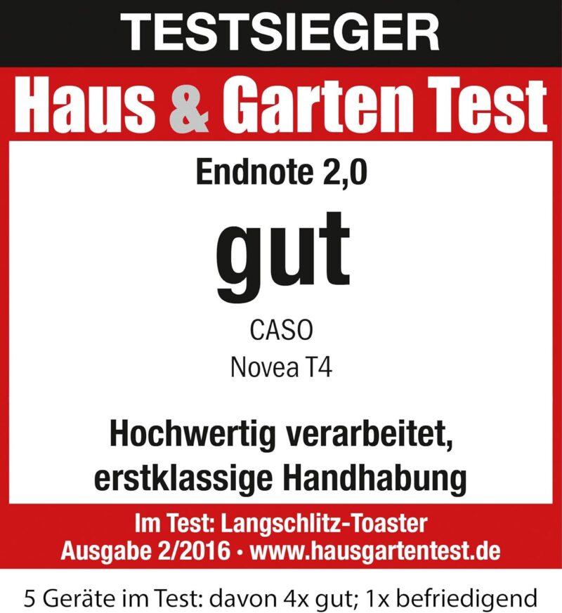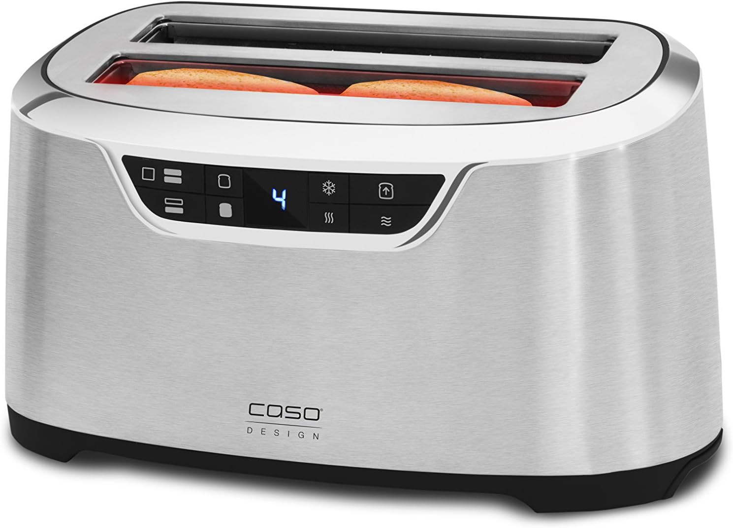 محْمَصَة خبز CASO Novea T4 Design Toaster من الفولاذ المقاوم للصدأ لأربع شرائح بفتحات عريضة جدًا، مزودةبرفع آلي بالمحرّك، وضبط دقيق مع 9 مستويات لتحمير الخبز، وتتضمن ملحقًا كبيرًا لتسخين الخبز– رقم الطراز 2777