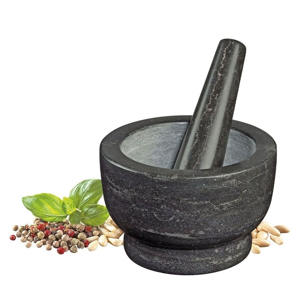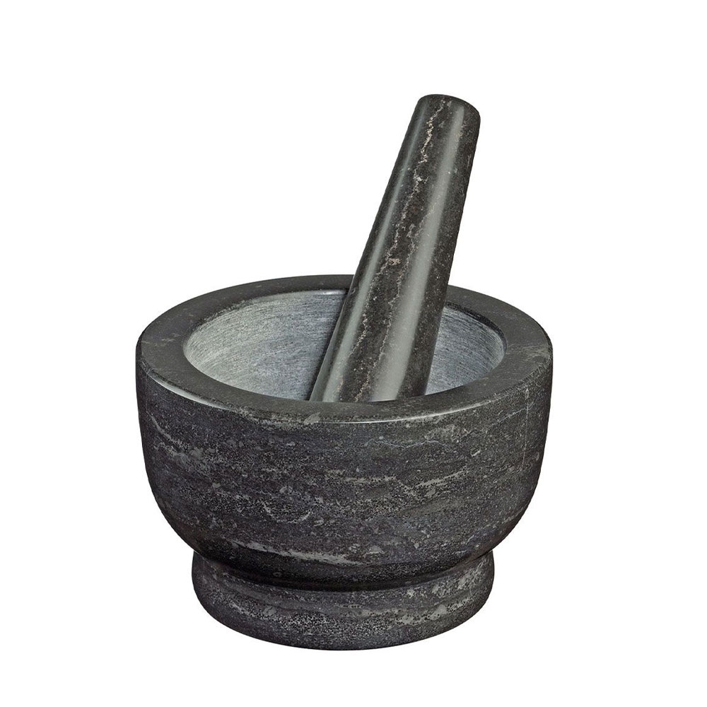 لا يقتصر الأمر هنا على المظهر الأنيق فحسب. فالهاون “أورانوس” من سيليو مصنوع من الرخام، يتميز بملمس خارجي ناعم وبارد بشكل مريح، بينما السطح الداخلي الخشن مثالي لتحضير خلطات التوابل والأعشاب والصلصات أو البيستو. يزن الهاون 3.5 كجم، مما يمنحه ثباتًا قويًا أثناء طحن وخلط الفلفل، بذور الخردل، القرنفل والمزيد. أما المدق فيتميز بسهولة الإمساك والتحكم، ويمكن تحريكه بأمان داخل الوعاء الكبير بما يكفي. الحجر مقاوم للتآكل ومحايد النكهة، وسيصاحبك في العديد من مغامراتك الطهوية.