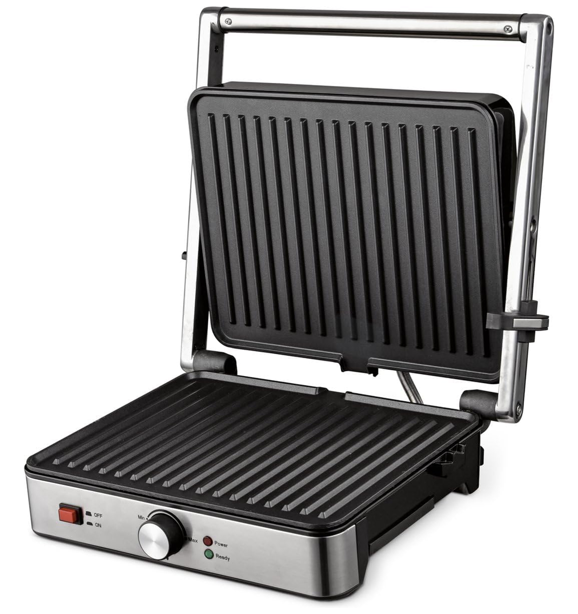 جهاز مدمج وأنيق سهل الاستخدام، مزوّد بثرموستات مدمج (حتى 200°C)، وصينية لتجميع الدهون قابلة للغسل في غسالة الصحون، وألواح شواء غير لاصقة لسهولة الطهي والتنظيف.
