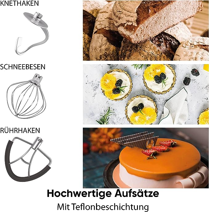 • باستخدام خطاف العجين المصنوع من الألمنيوم المصبوب، يمكن عجن العجائن الثقيلة مثل عجينة الخبز أو الخميرة بسهولة.