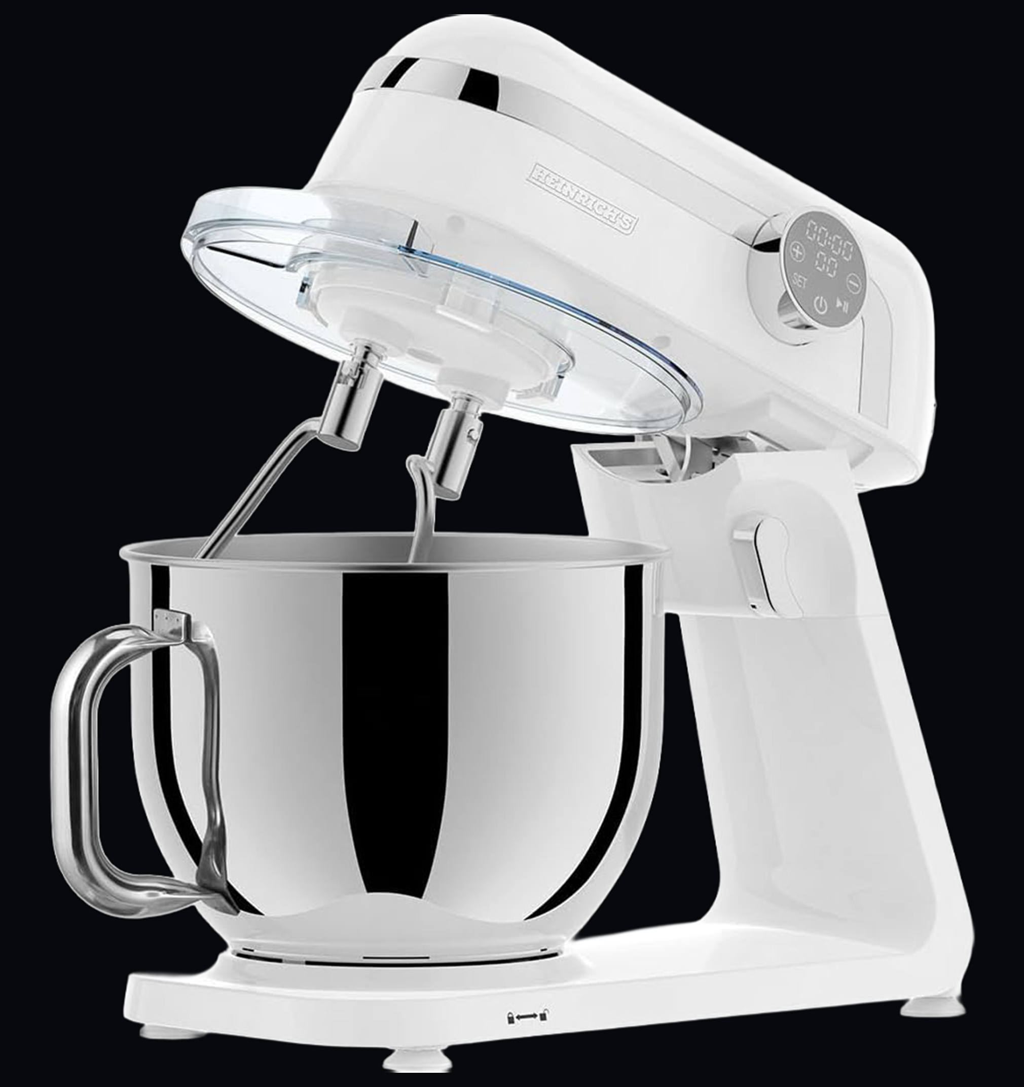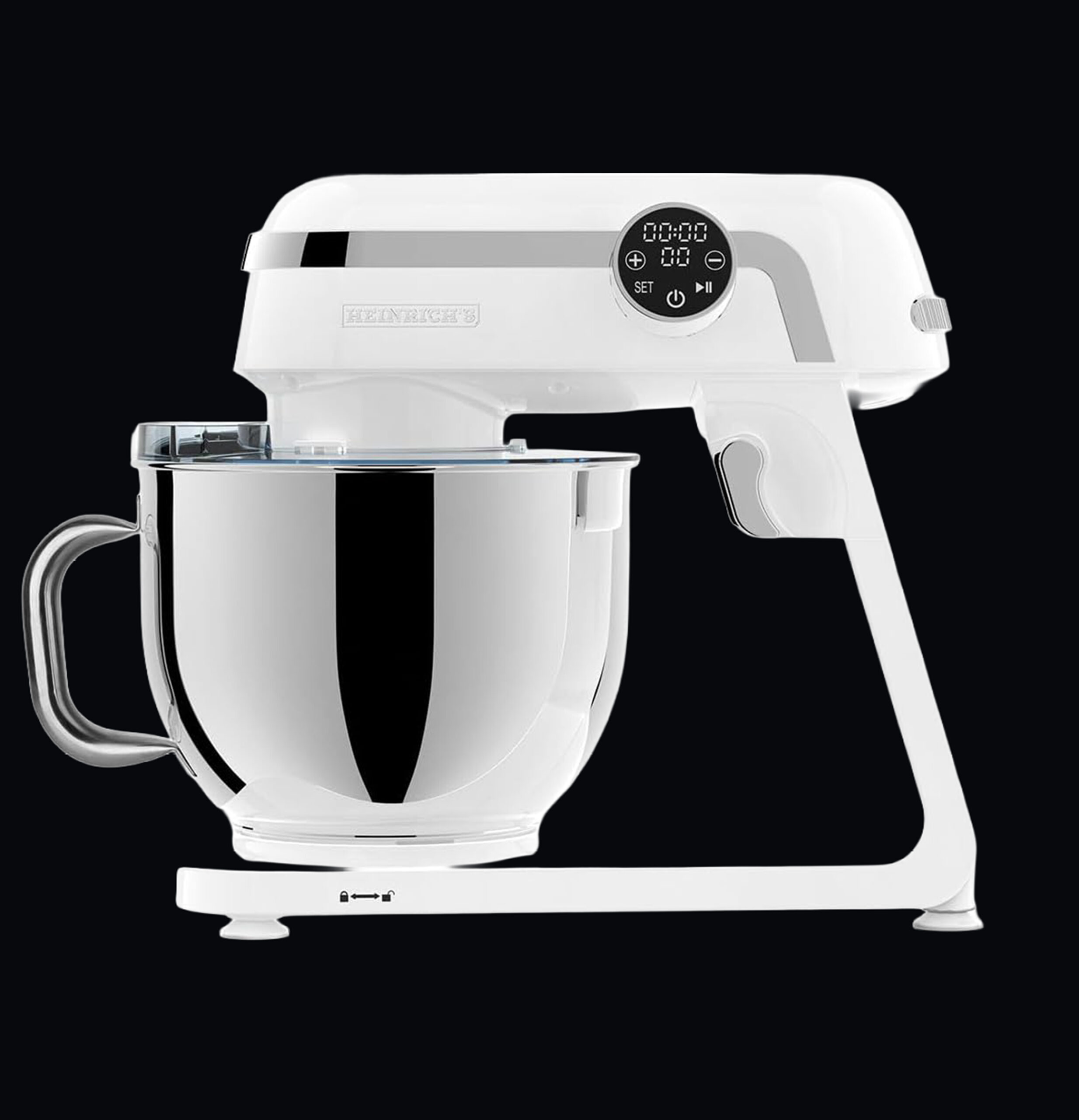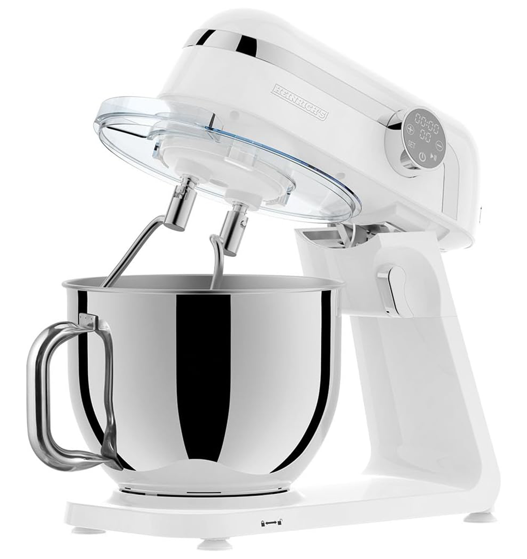 آلة معالجة الطعام والعجن من Heinrich´s – جهاز مطبخ احترافي بقدرة 1800 واط، مزودة بخاصية التحكم باللمس، تعمل بهدوء منخفض، وتشمل خافقًا وخطّافين للعجن. تأتي مع وعاء كبير من الفولاذ المقاوم للصدأ بسعة 7 لترات (XXL). اللون: أبيض HKM 8079
