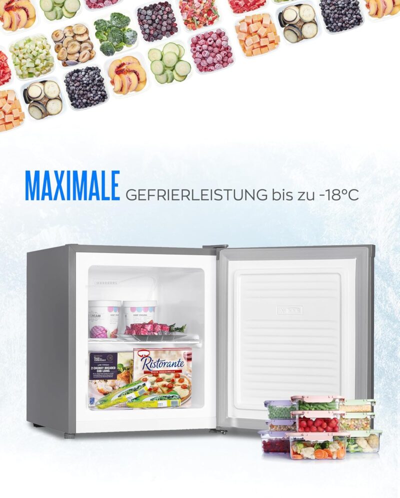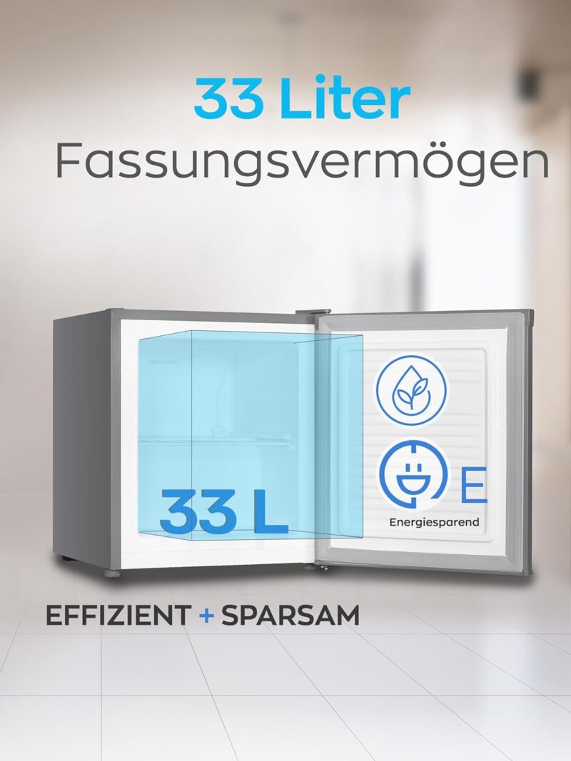 فريزر صغير بسعة 33لتر – صغير الحجم وهادئ: 39 ديسيبل | صندوق فريزر مزود بمفصلة باب قابلة للتبديل | فريزر صغير بدرجة تبريد تصل حتى -18 °م | مناسب للمكتب، التخييم والاستخدام الخارجي من Heinrich´s [إنير (إنوكس)].