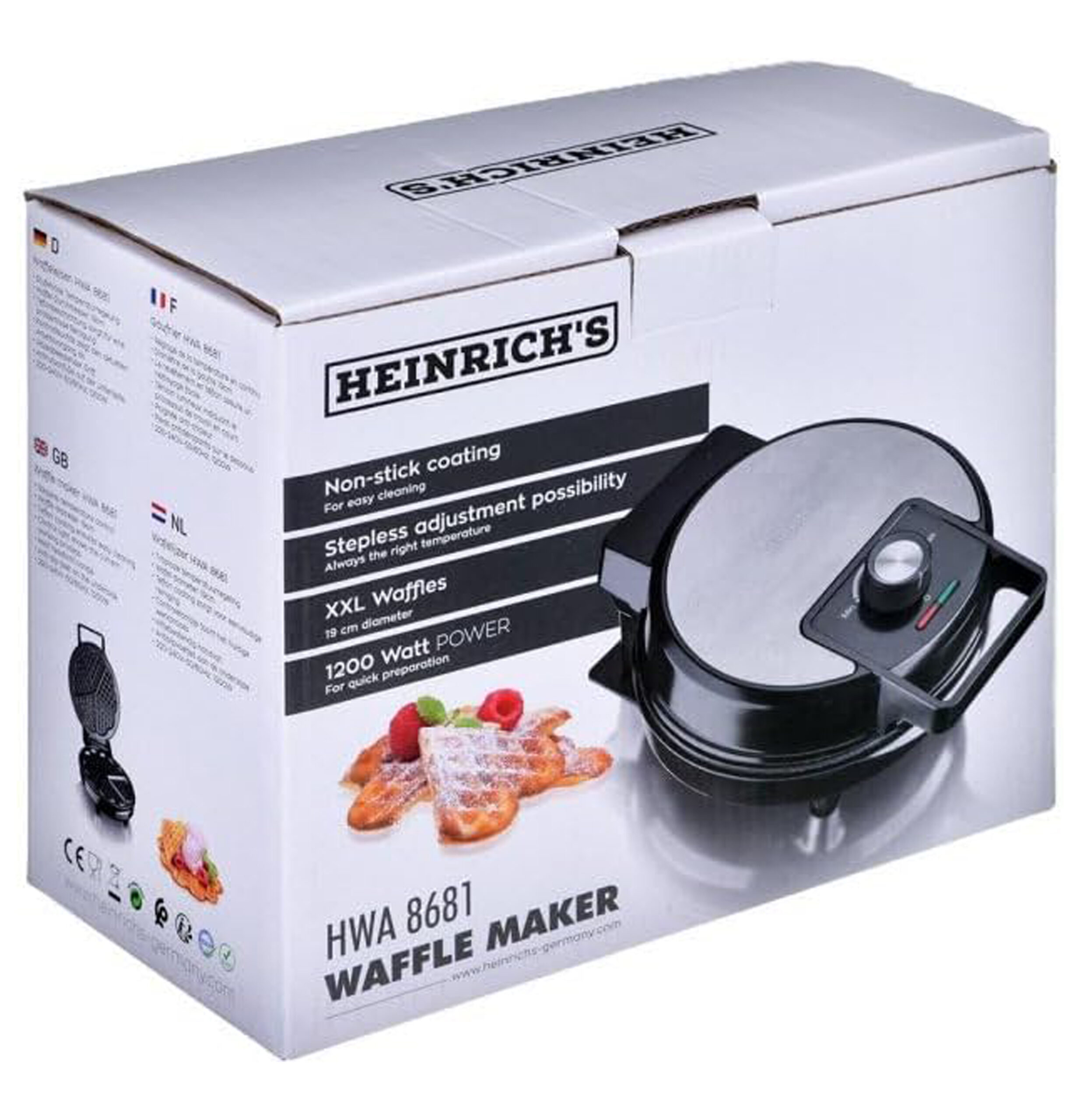مع صانعة الوافل هاينريش HWA 8681 يمكنك خبز خمس قطع من الوافل الشهية على شكل قلوب في وقت واحد، مما يجعلها مثالية للمناسبات الخاصة مثل حفلات الأطفال. تتميز الآلة بطلاء غير لاصق يسهل إخراج الوافل بمجرد نضجه.