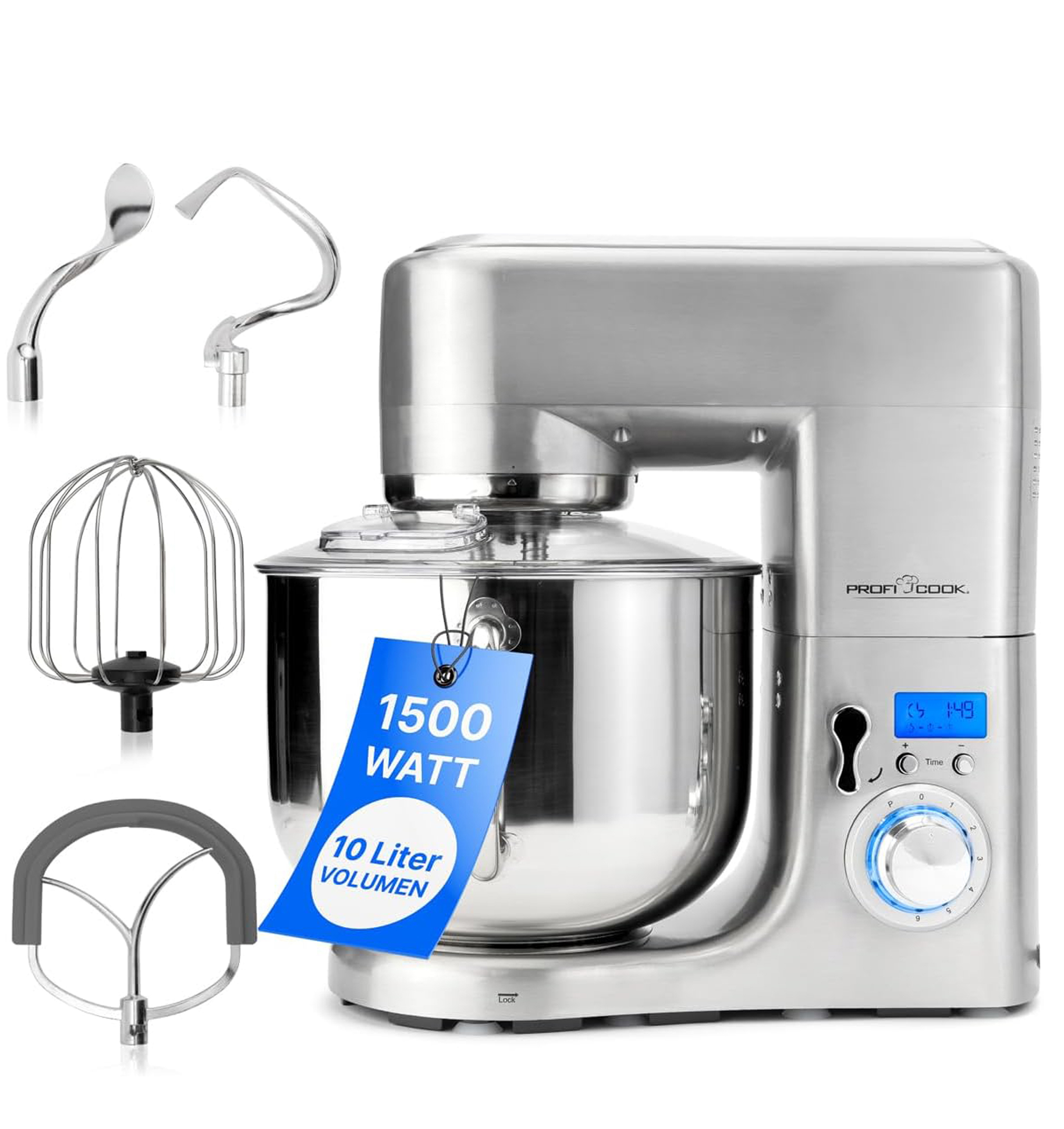 - محرك احترافي قوي بعمر طويل 1500 واط يتعامل بسهولة مع العجائن الثقيلة مثل عجين الخبز، البيتزا أو المكرونة – استمتع بشغف الخَبز بلا قيود!