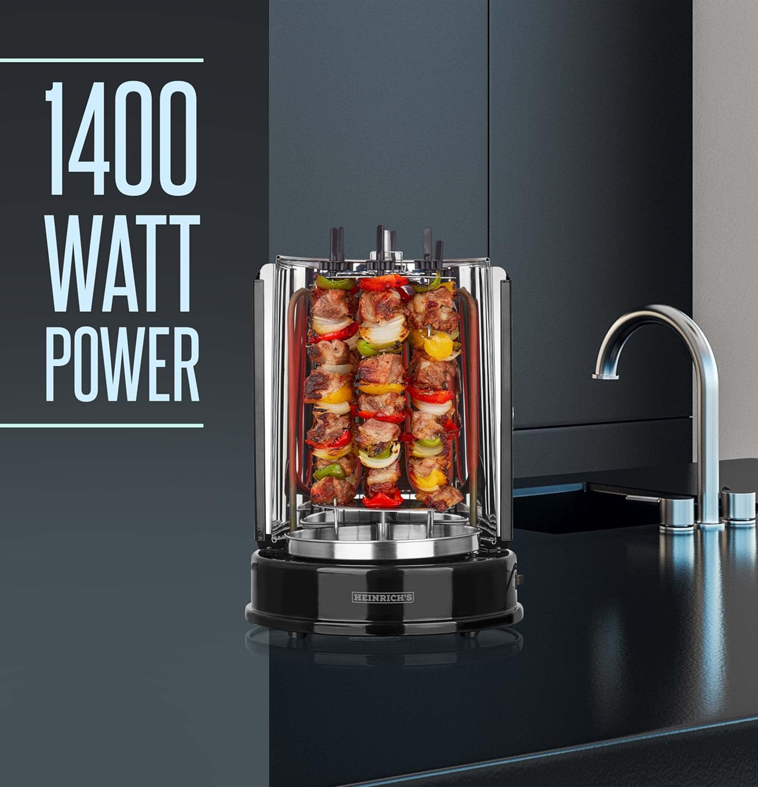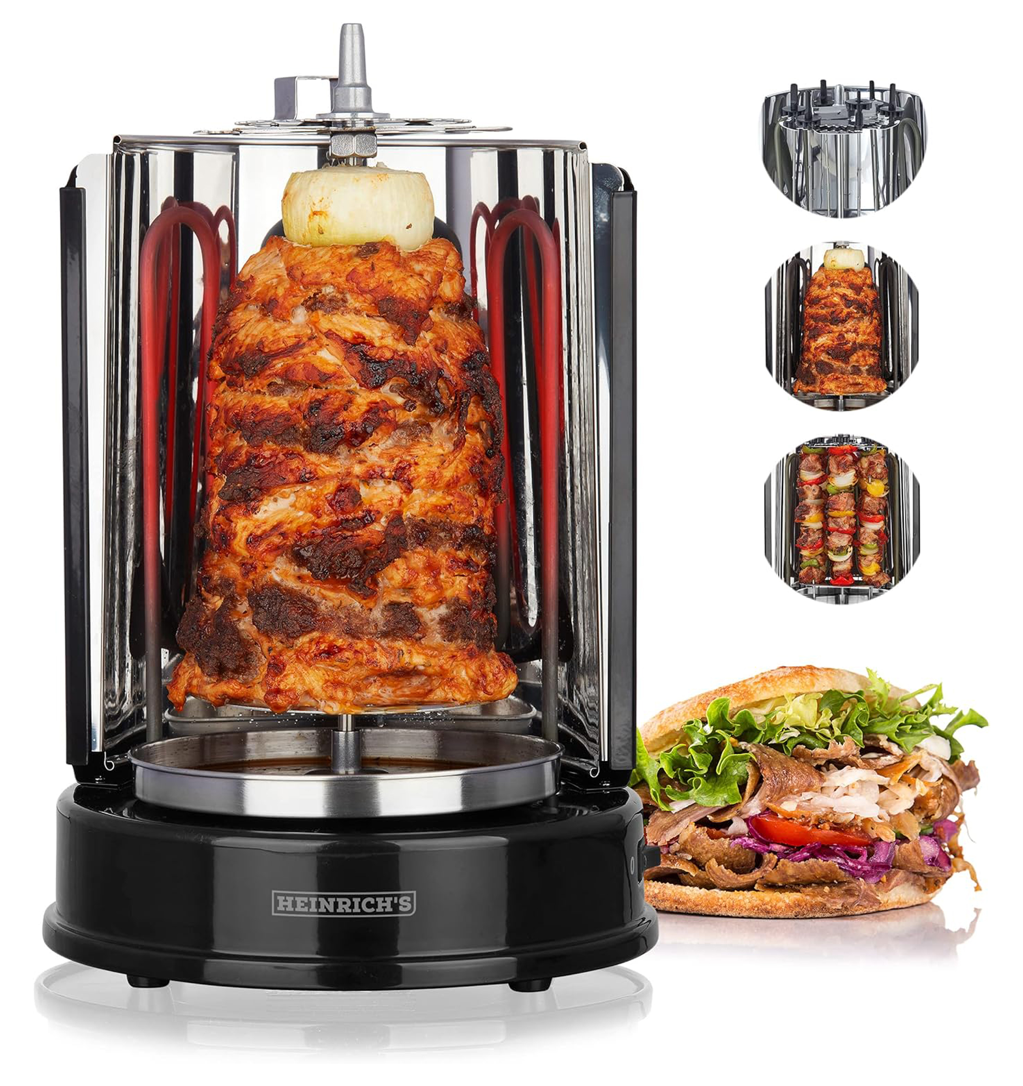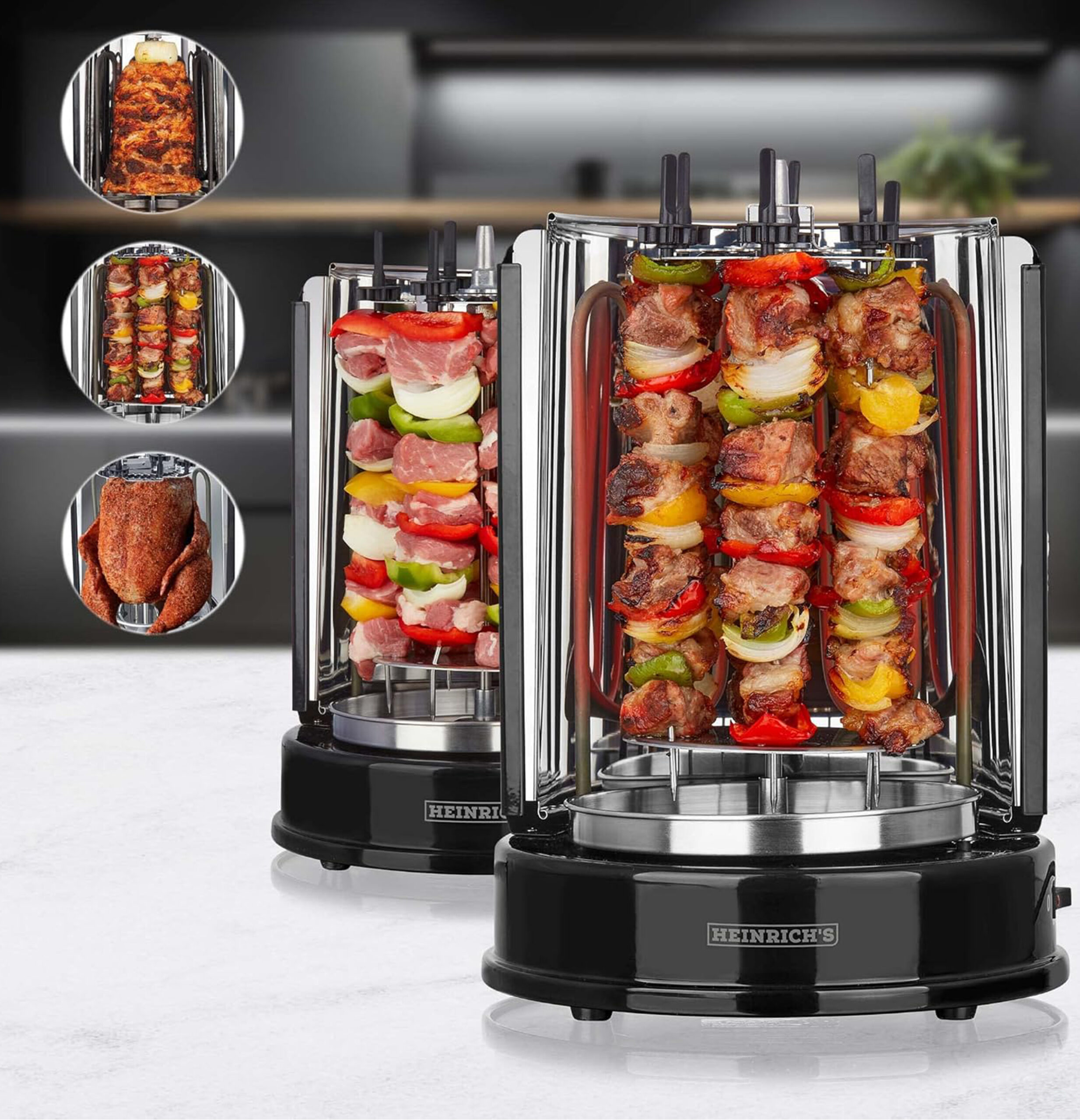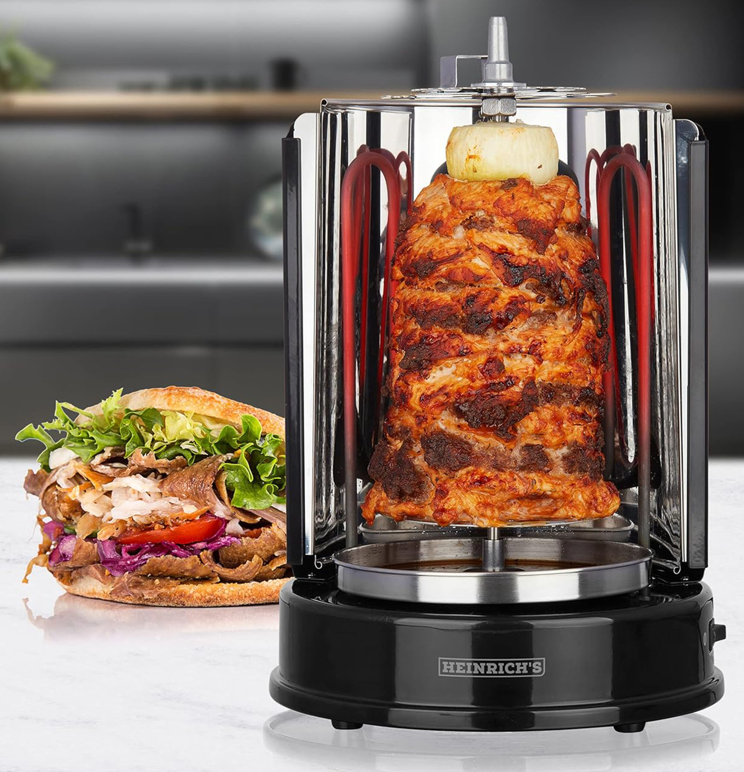كاروسيل اللحوم: لتبدأ تجربة الشواء الدوّار. تم تصميم شواية الكباب الكهربائية هذه لتعمل بشكل مثالي كشواية طاولة.