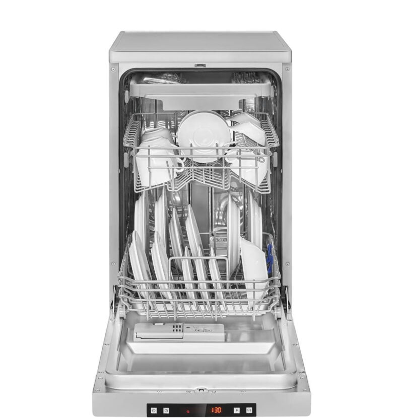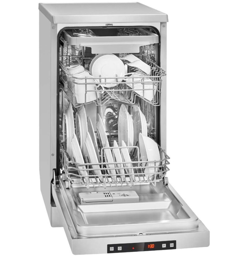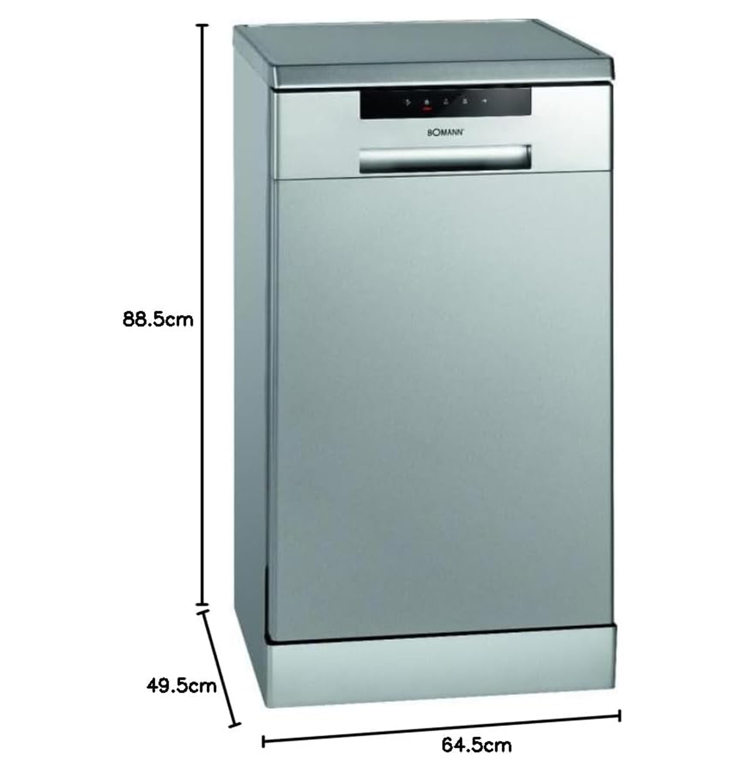 Bomann GSP 7409 silver Dishwasher, Stand/Undermountable/Freestanding, LED Display, 45 cm, 10 Settings, 6 Programmes, Stainless Steel [Energy Class E]