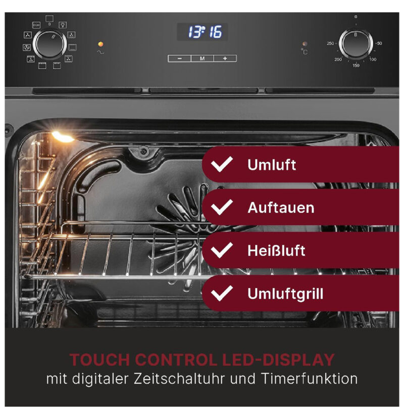 - The combination of retractable control buttons and touch control makes the operation of this built-in oven particularly easy and pleasant