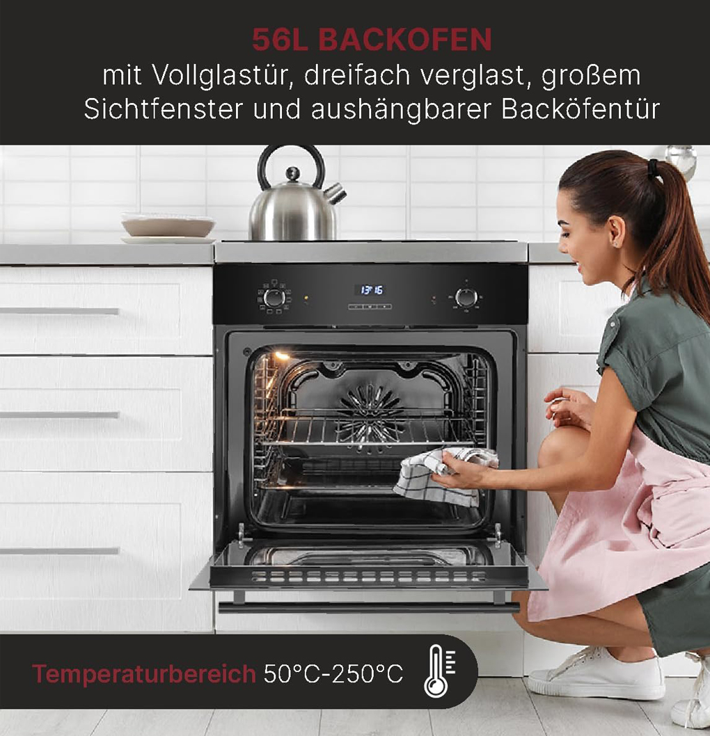 - The self-sufficient built-in oven with 56 litres of net capacity offers you enough space to prepare delicious meals for your family, and lets you develop your culinary creativity