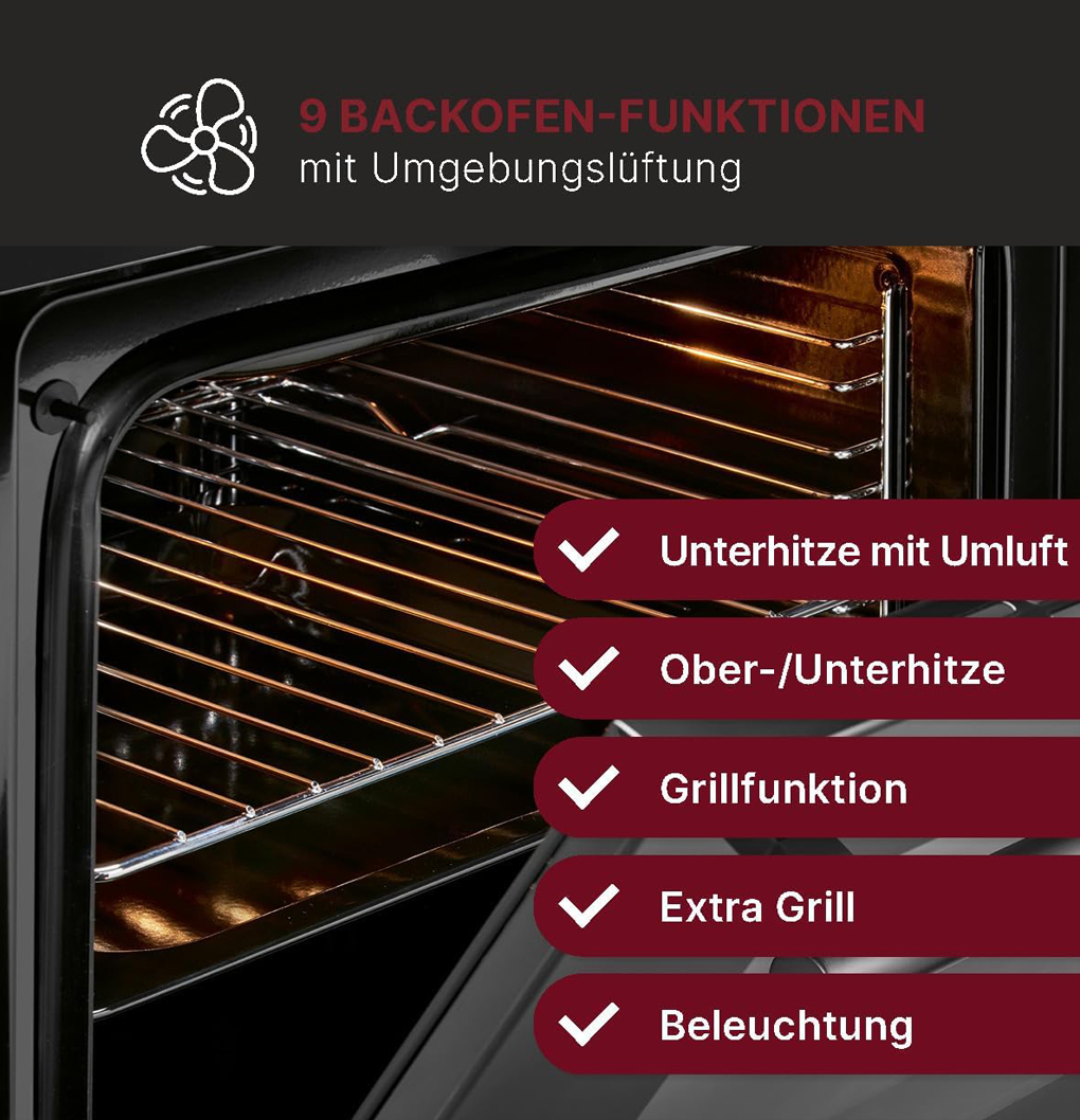 - 9 functions: bottom heat with convection, top/bottom heat, convection, grill, extra grill, convection grill, hot air, defrost and lighting