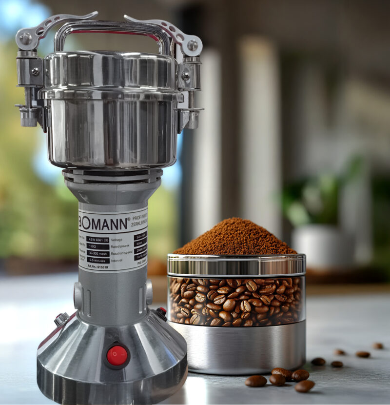 Coffee grinder KSW 6501 CB Stainless steel drum with a capacity of up to 150 grams Stainless steel knife with three blades – stainless steel bowl (smell protection and health) with a cleaning brush attached and extra “charpon” spare parts and extra knives” – Circle Safety – Operation is only possible with the lid on – Stainless steel lid – On/off button – Grinding degree can be selected depending on the length of operating time – Power 110V 240-;50Hz/60Hz, 850W Long life professional motor – Metal gears 28000 RMB