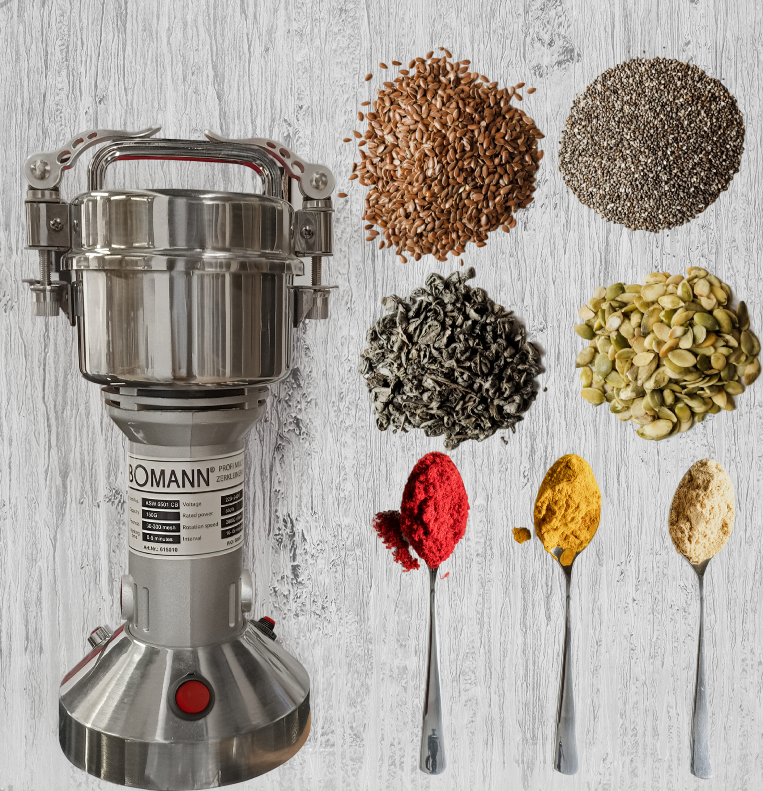 Coffee grinder KSW 6501 CB Stainless steel drum with a capacity of up to 150 grams Stainless steel knife with three blades – stainless steel bowl (smell protection and health) with a cleaning brush attached and extra “charpon” spare parts and extra knives” – Circle Safety – Operation is only possible with the lid on – Stainless steel lid – On/off button – Grinding degree can be selected depending on the length of operating time – Power 110V 240-;50Hz/60Hz, 850W Long life professional motor – Metal gears 28000 RMB