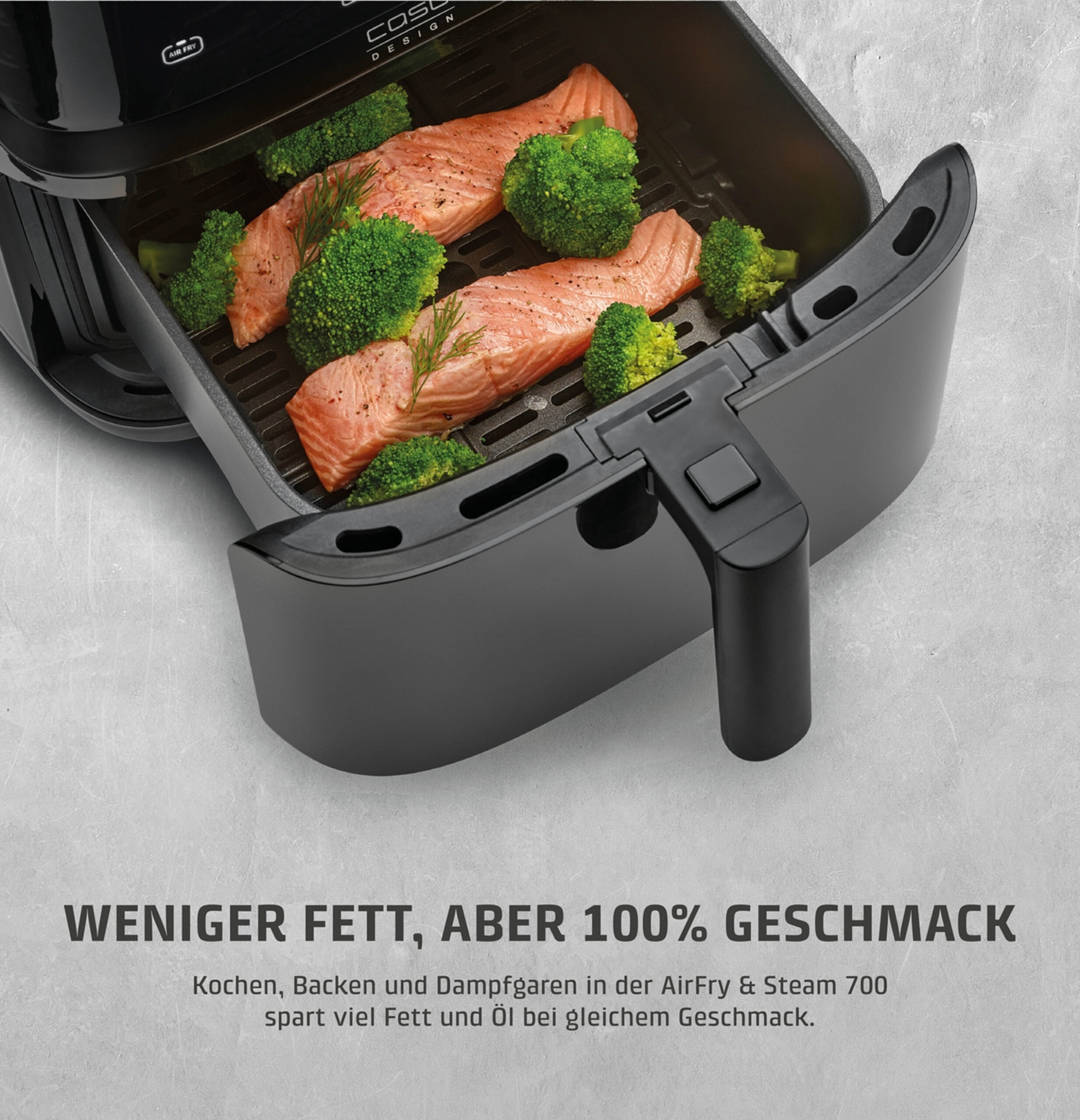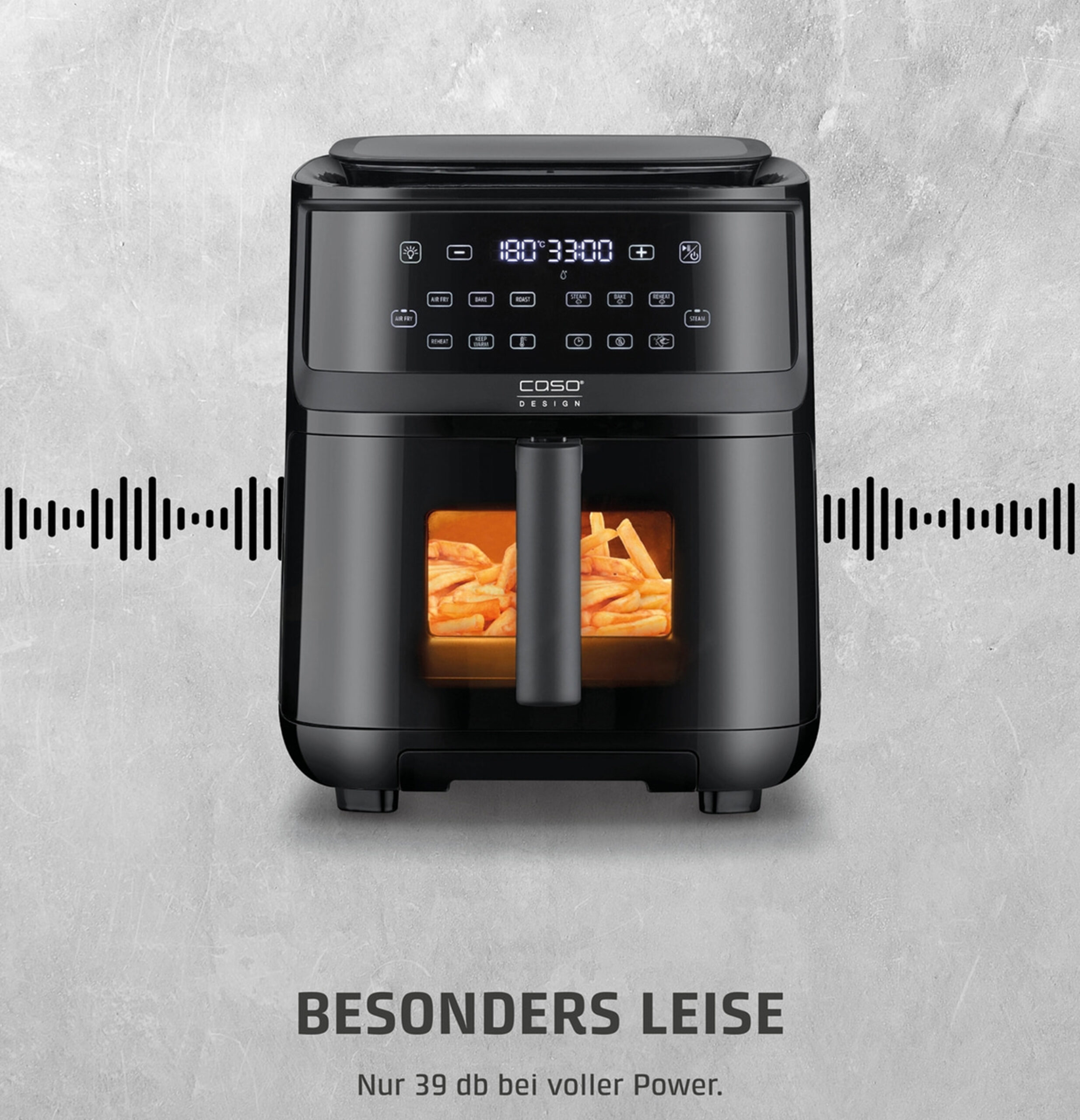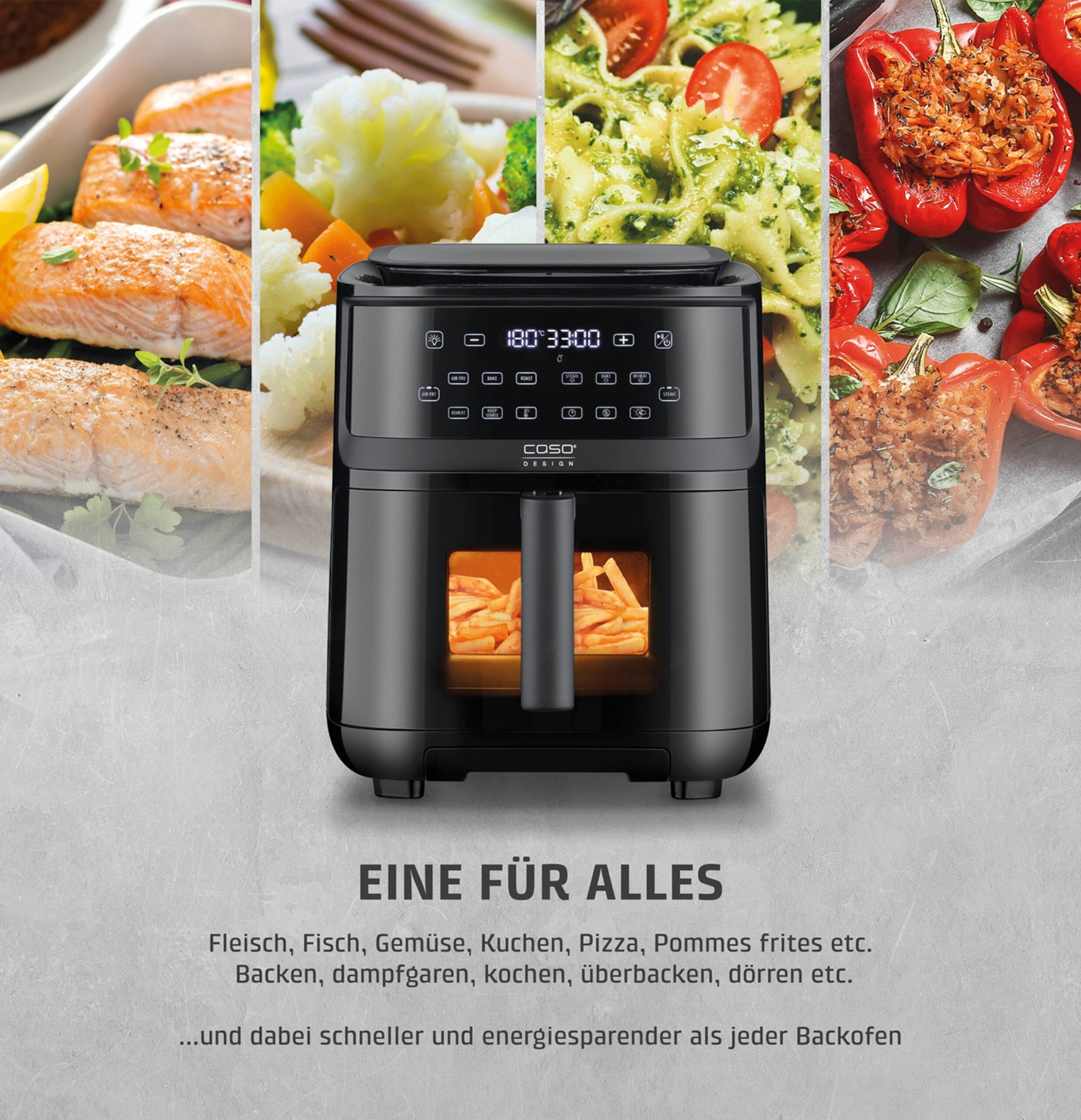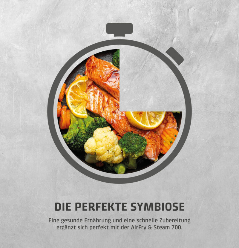 – AirFryer & steam function (140 – 200 °C) - Timer adjustable from 1 – 90 minutes with end signal tone