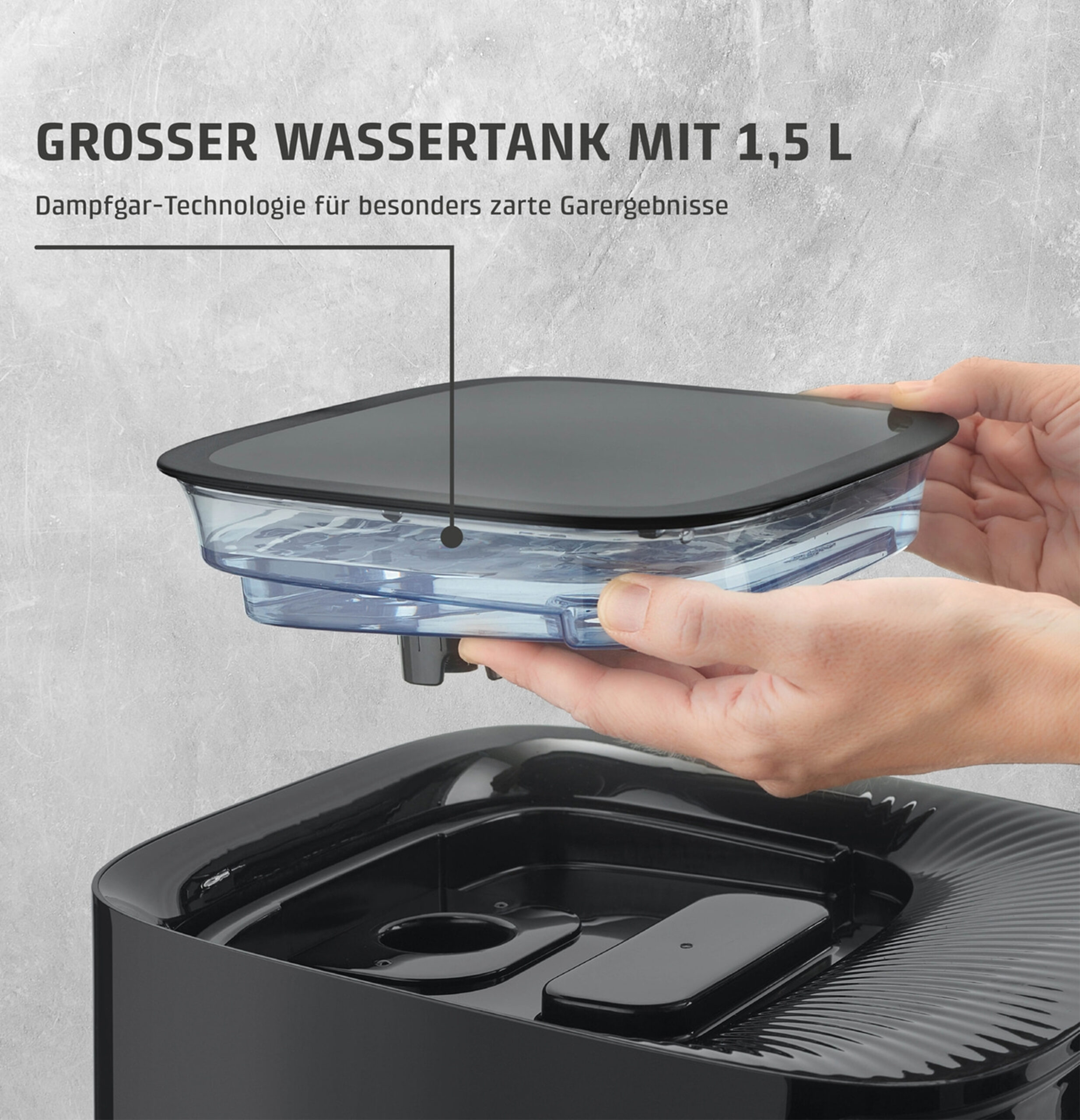 – Steam: Steam cooking, steam baking, regenerating, steam cleaning - Easy to clean thanks to dishwasher-safe basket, rack and removable water collection tray
