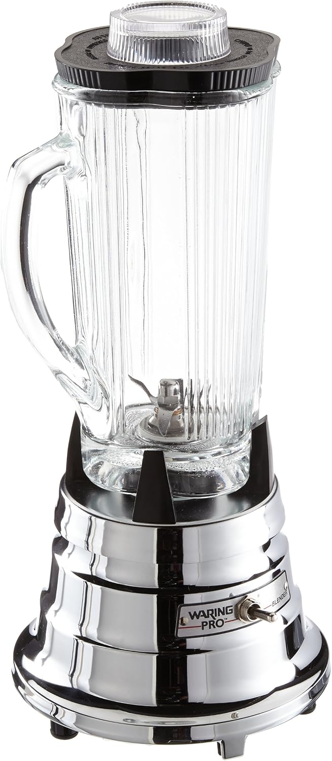 Make up to 25 fresh and frozen drinks per day with the Waring® BB900G 1/2 HP Chrome Bar Blender. Its two-speed motor and four heavy-duty stainless steel cutting blades blast through tough fruits and vegetables with ease. The 40 oz. glass container is heat resistant. Enjoy quiet operation and stability while blending, thanks to its die-cast chrome base.