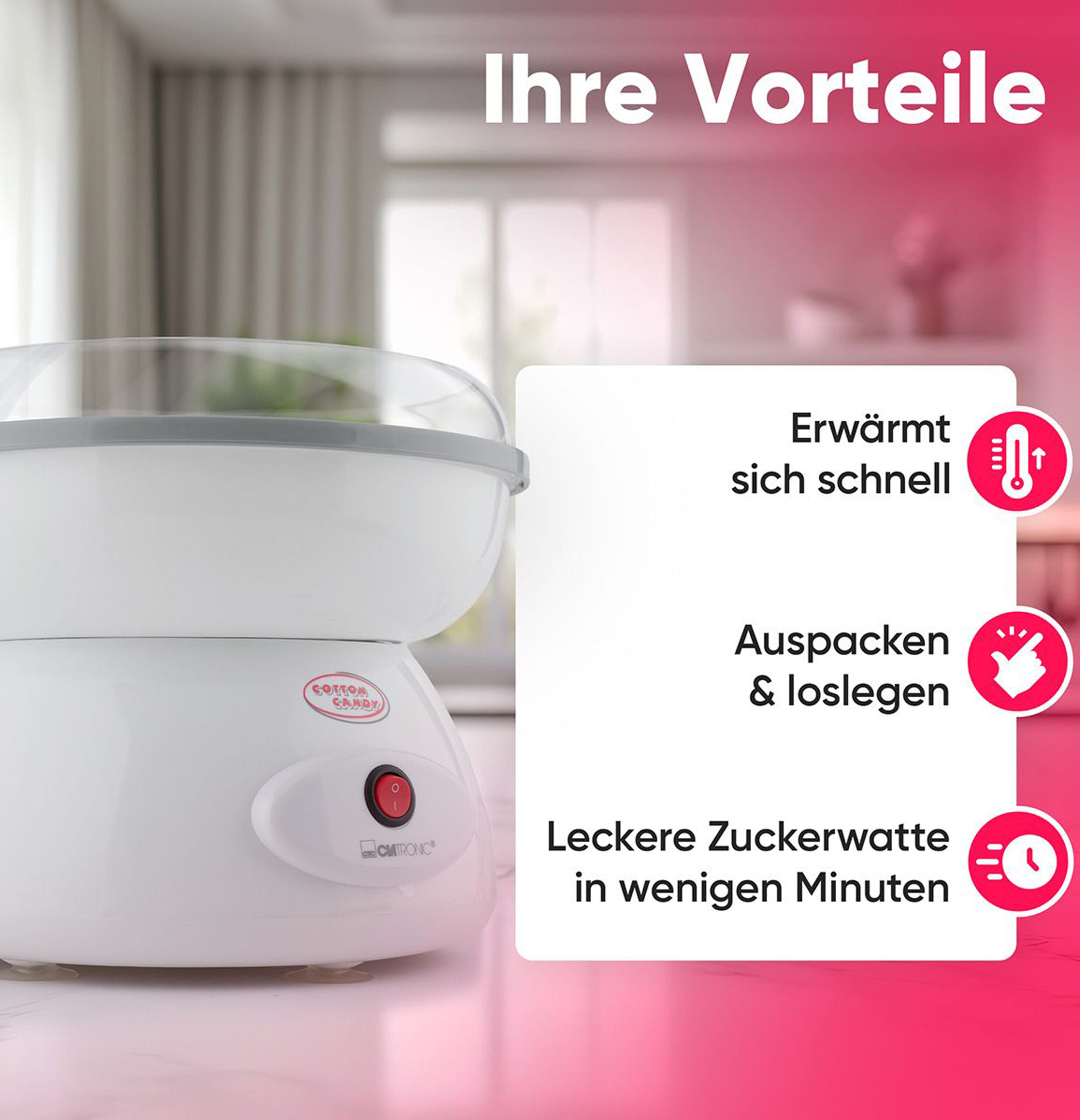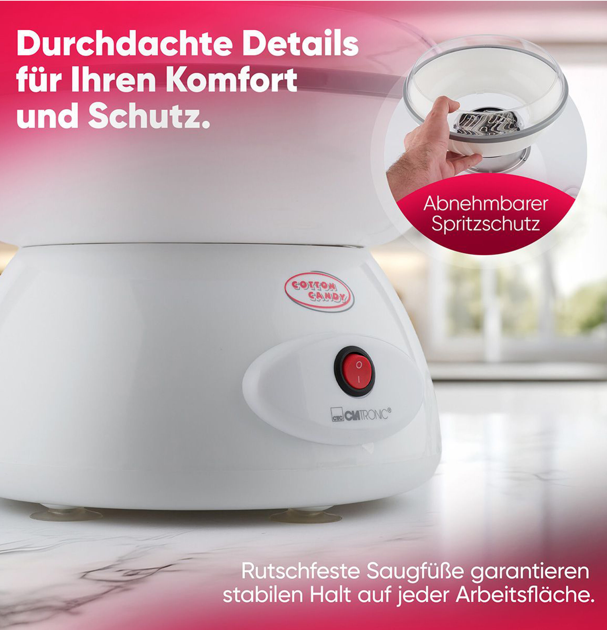 Bring fun and sweet delights to your next party with the Clatronic Cotton Candy Maker! Order now and experience sweet joy.