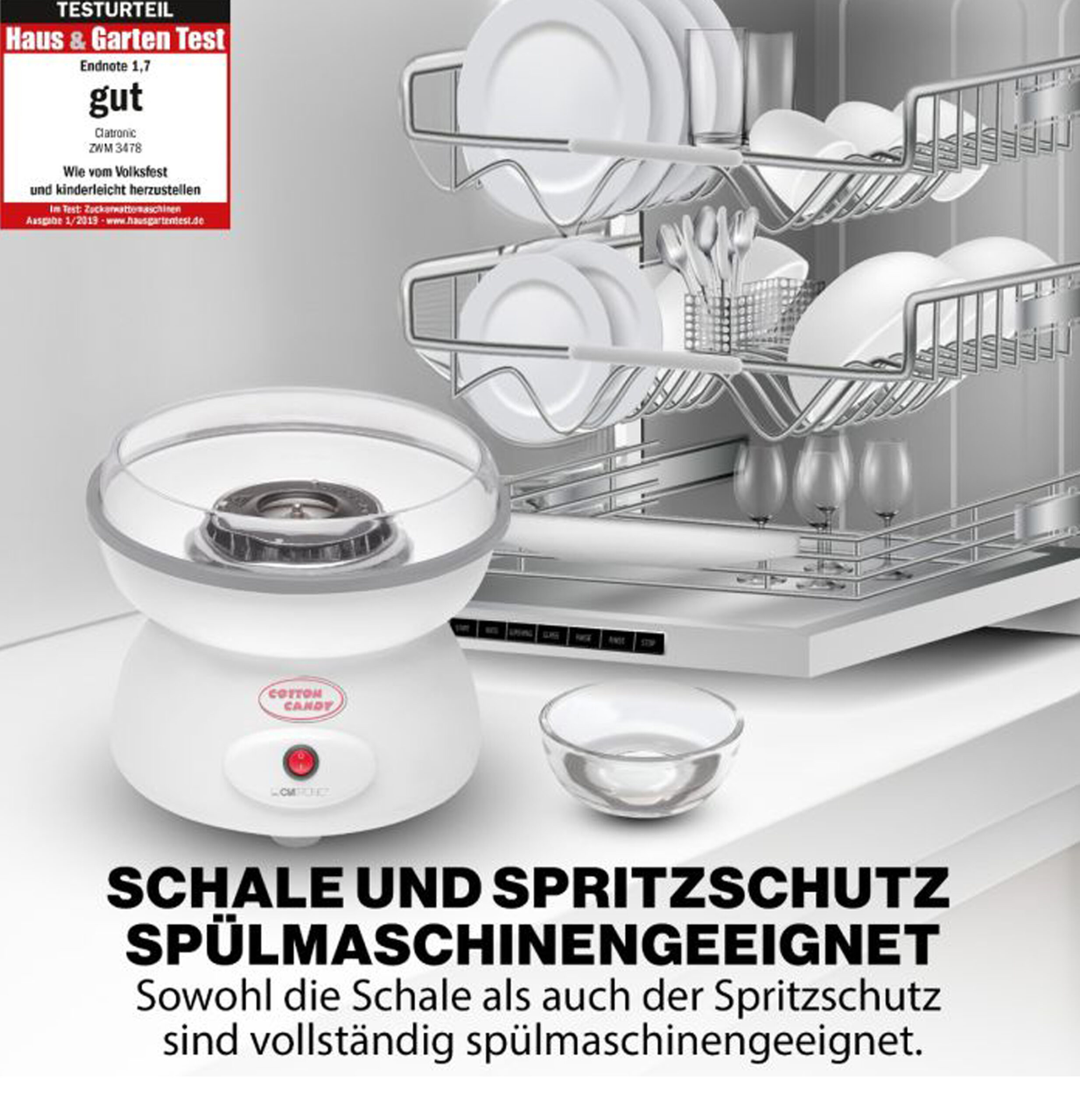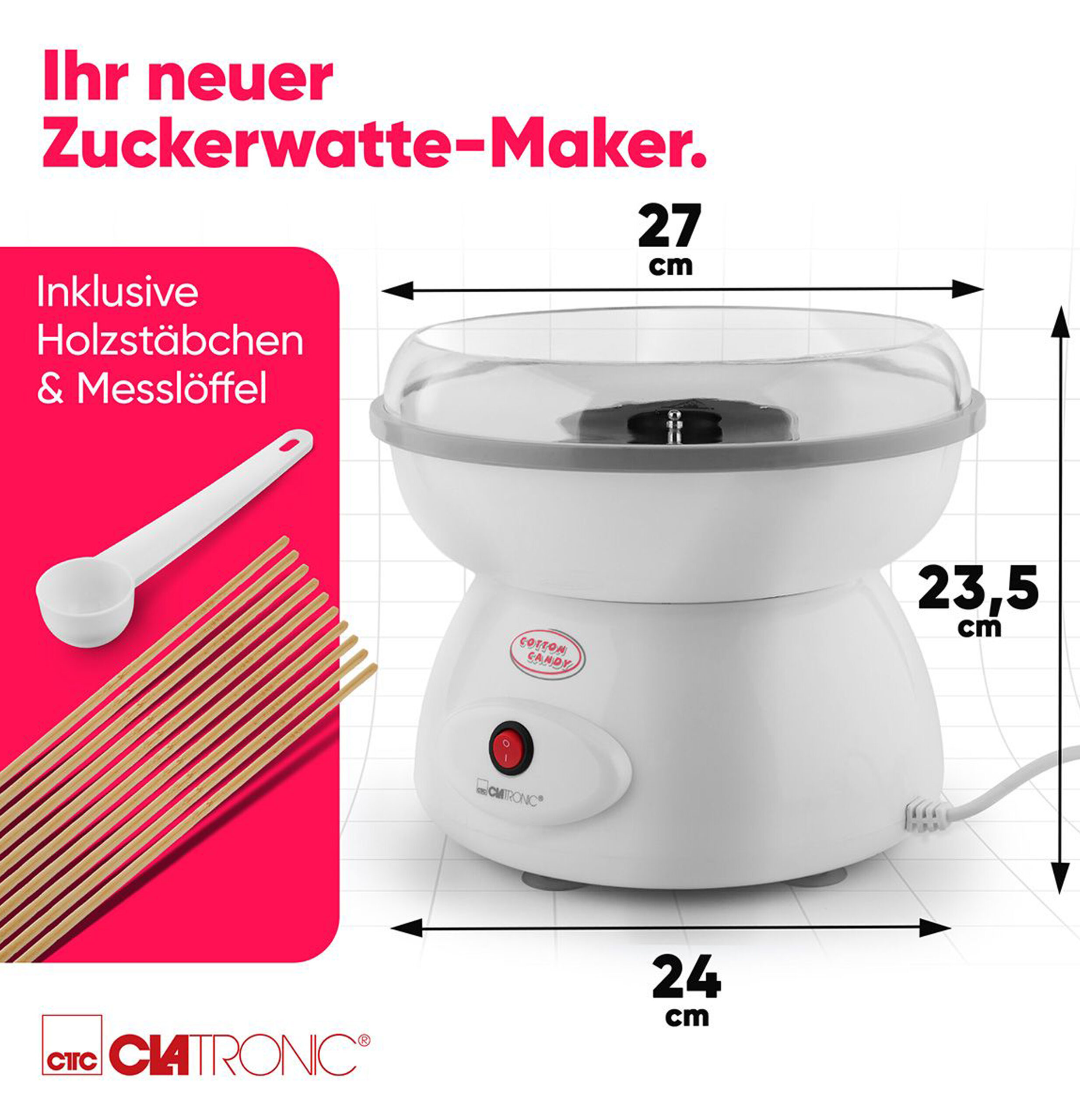 Clatronic Cotton Candy Maker, 450 Watts, Includes 10 Wooden Sticks, ZWM 3478 white