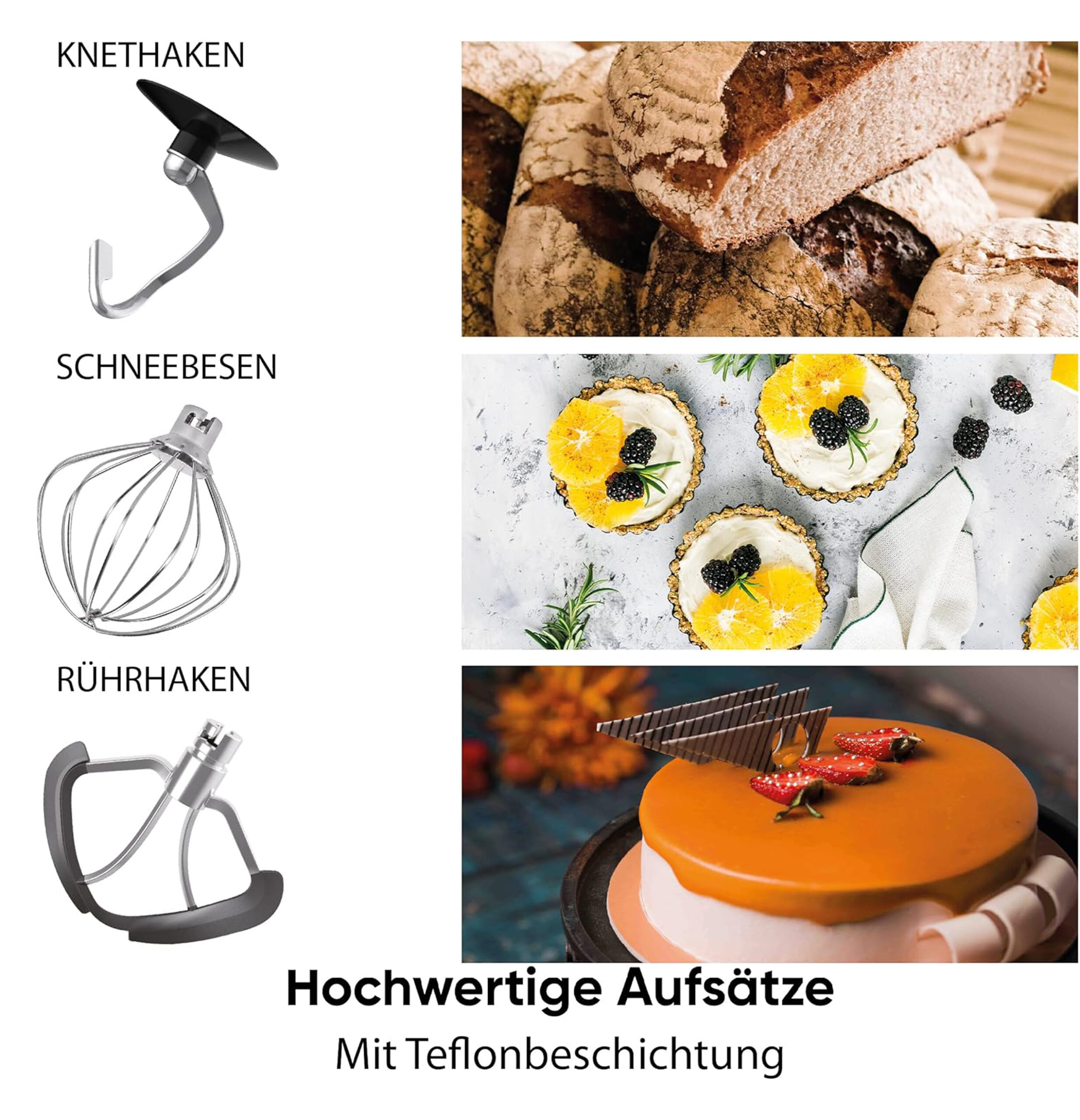 • The die-cast aluminum stirring hook ensures even kneading of even large amounts of dough.