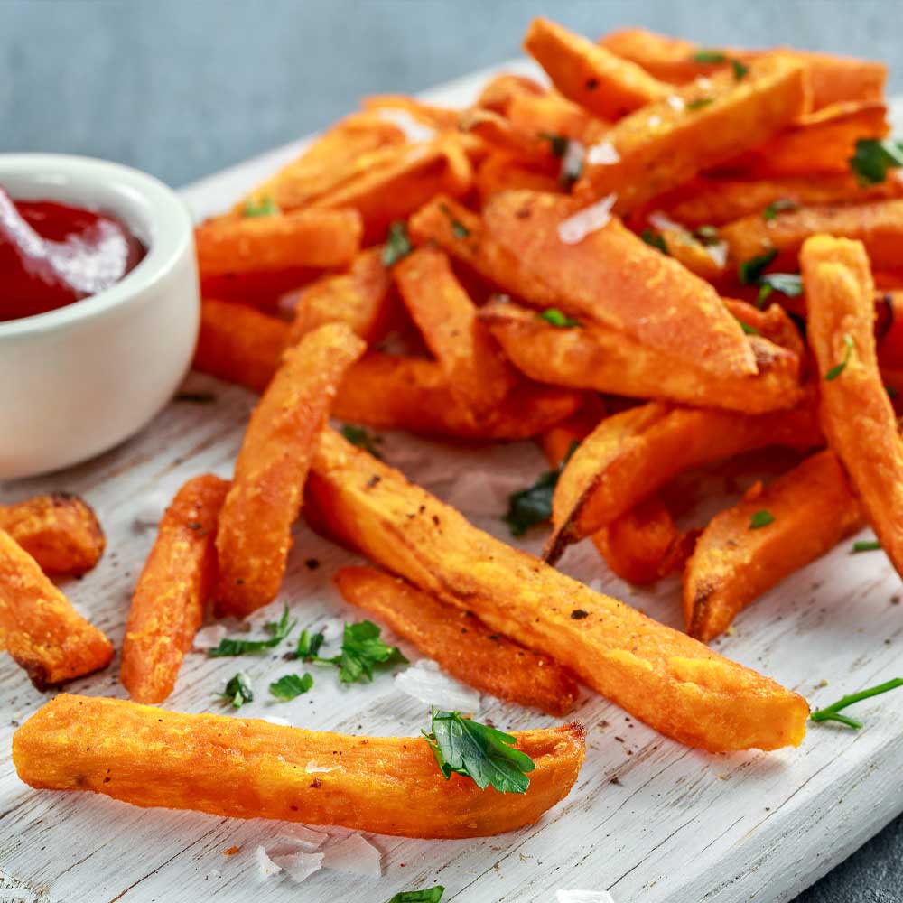 - 8 preset programmes for fries, chicken wings/thighs, fish, beefsteak and cutlet, cakes and dried fruit