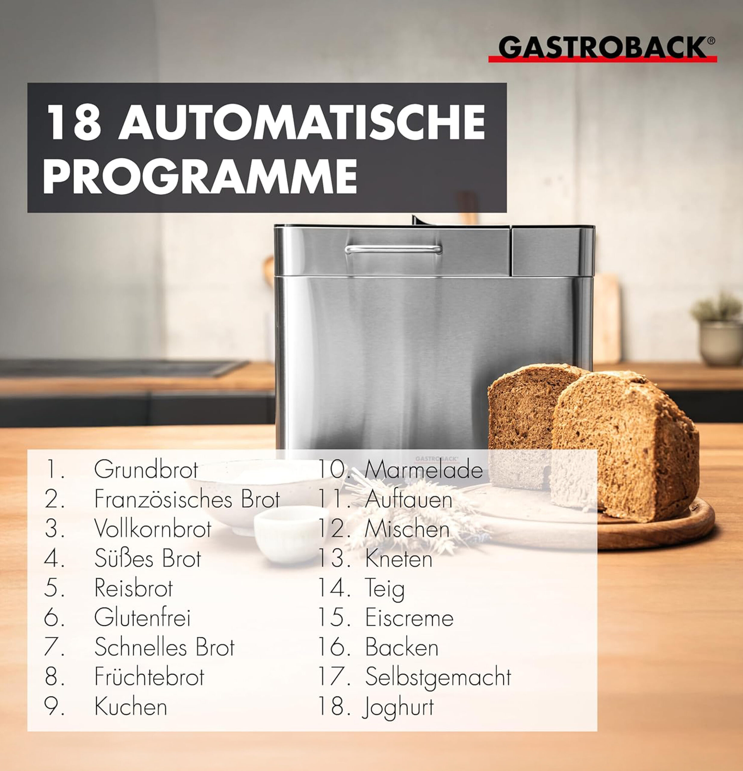 - 18 programs – for bread, jam, yoghurt, dough, cake and ice-cream*