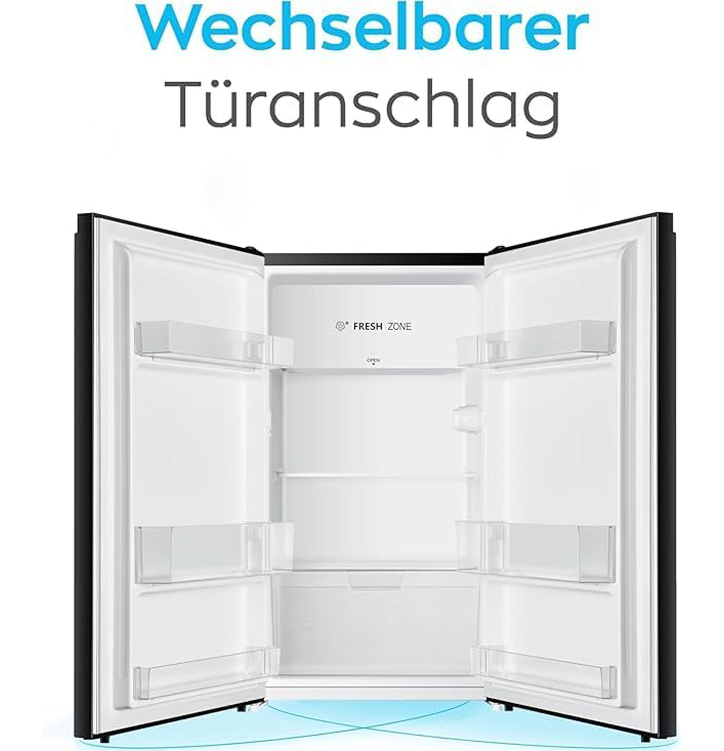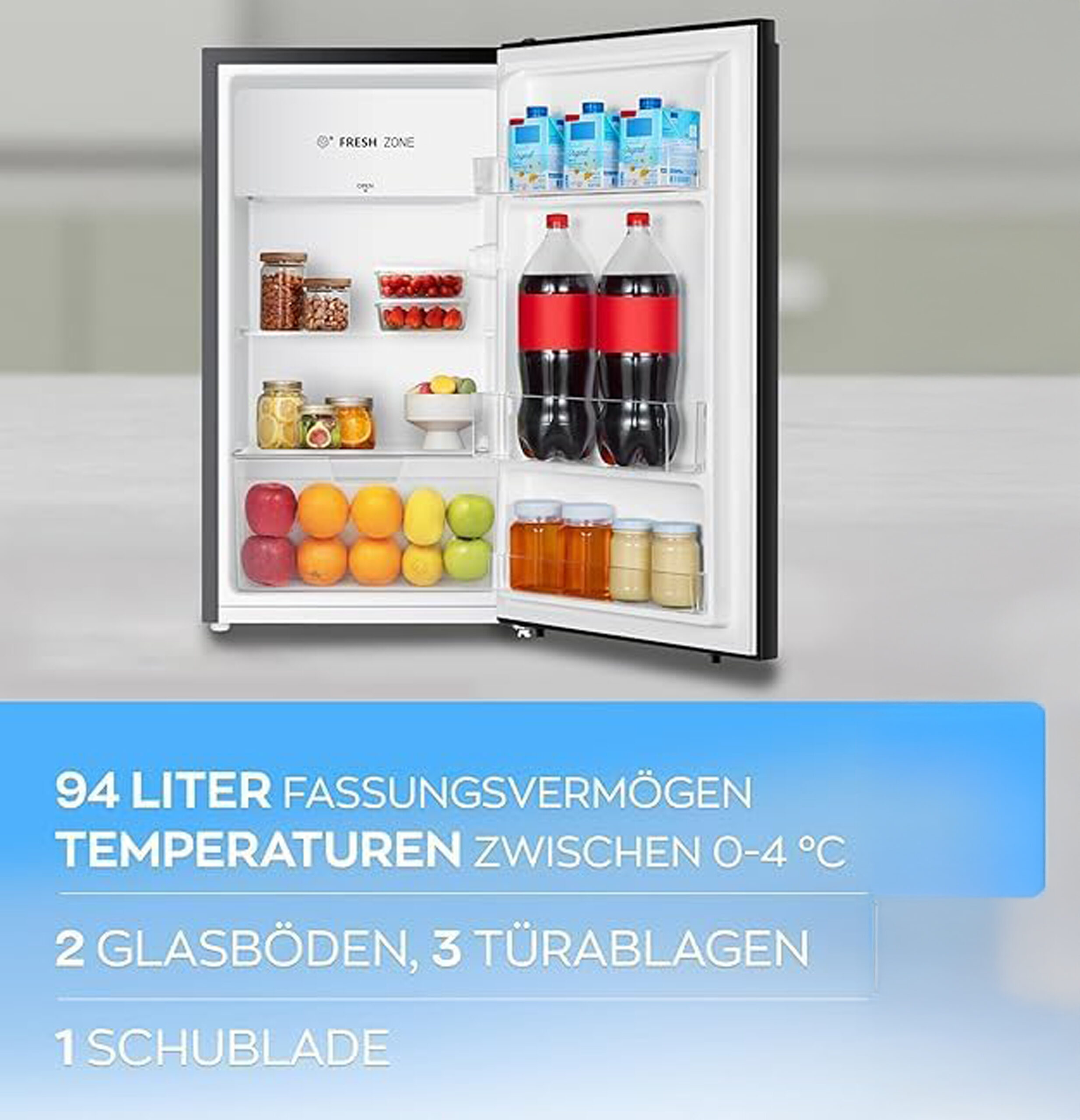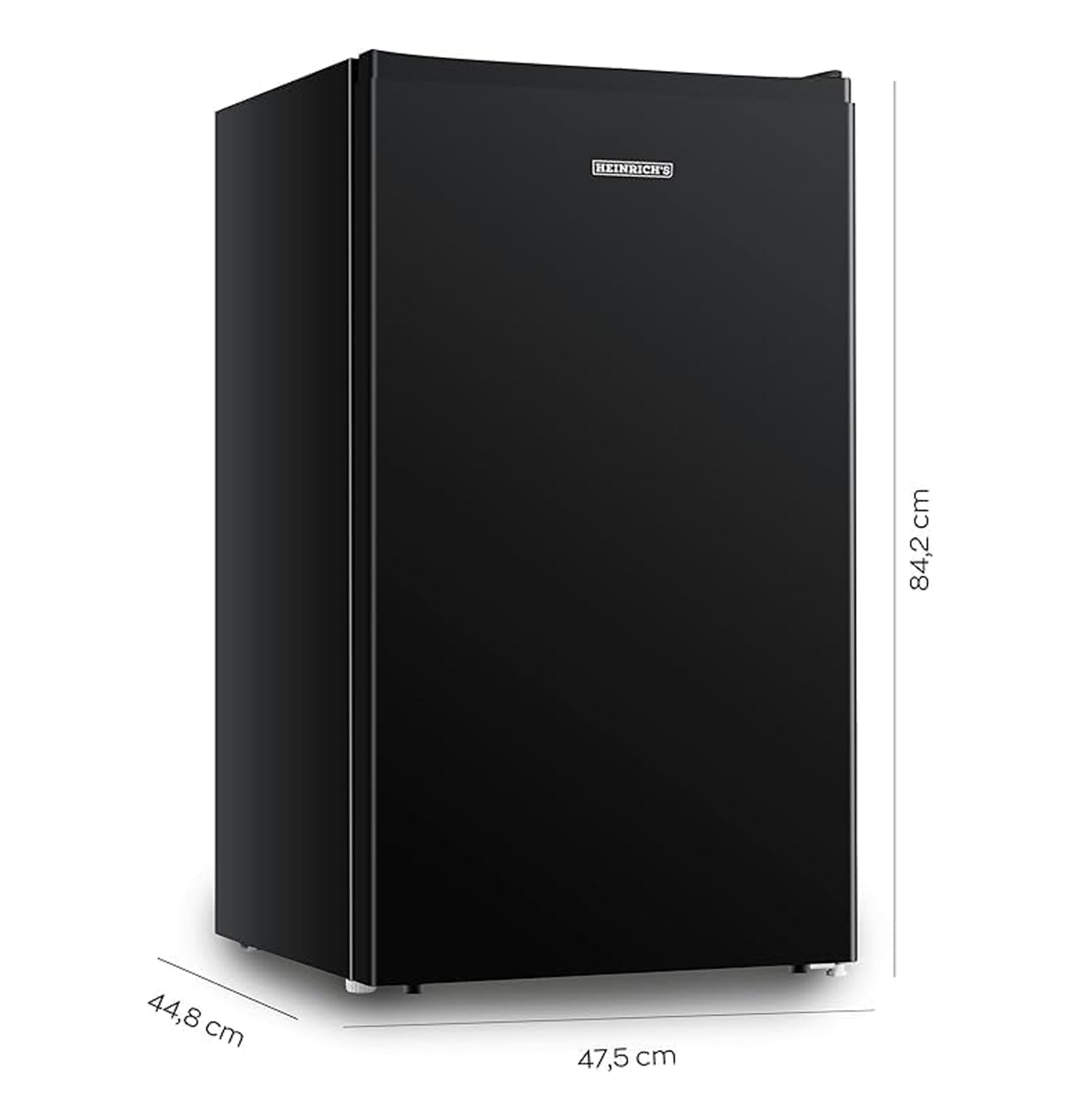 CAPACITY: Large 94-litre compact refrigerator perfect for small spaces, offices, or as a secondary cooling unit DESIGN: Sleek matte black exterior finish with a space-saving flat door design and adjustable temperature control DIMENSIONS: Compact footprint while maximising interior storage space, ideal for apartments or dormitories FEATURES: Reversible door design for flexible placement, with integrated door storage compartments EFFICIENCY: Energy-optimised cooling system maintains consistent temperature throughout the unit