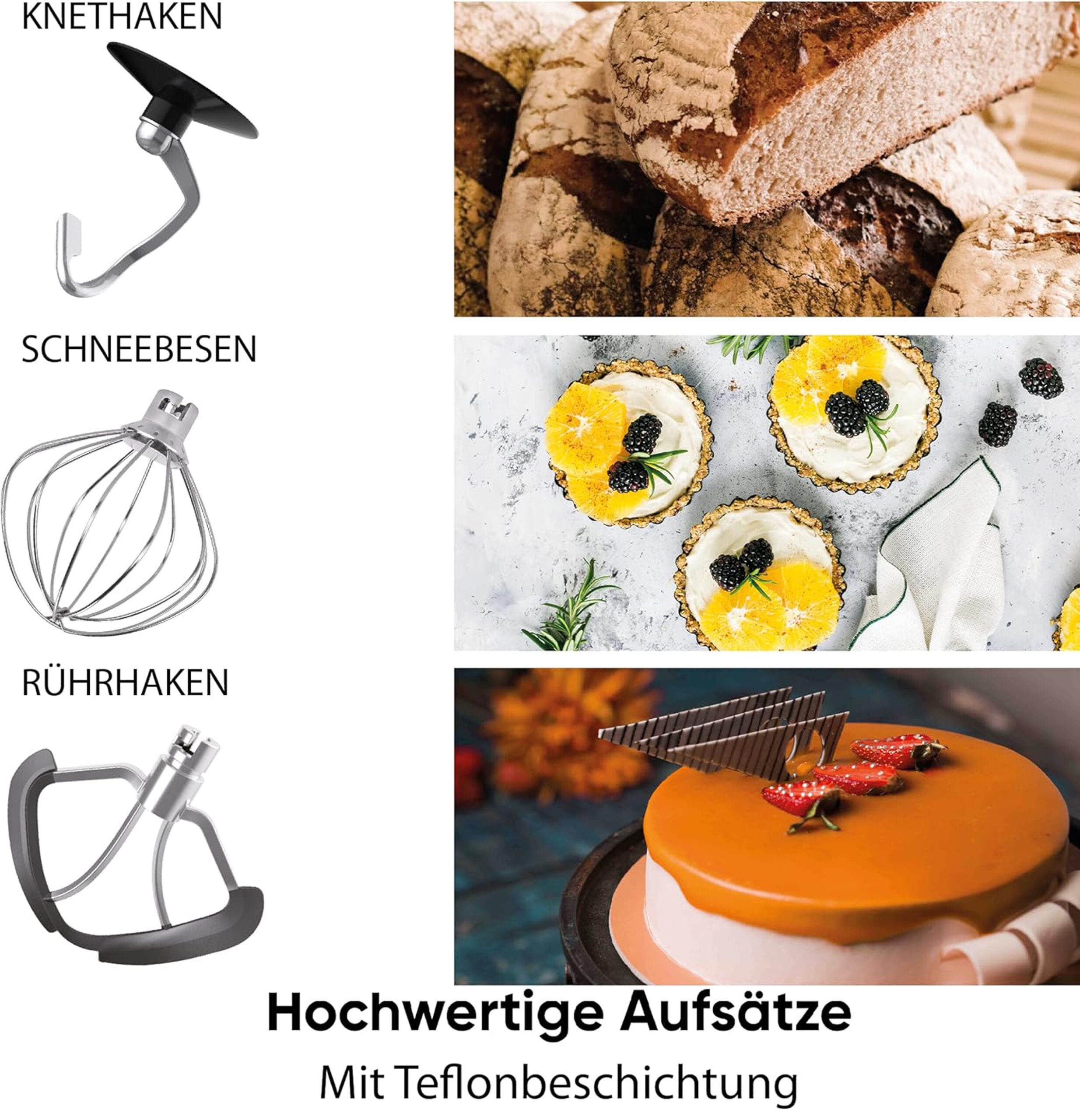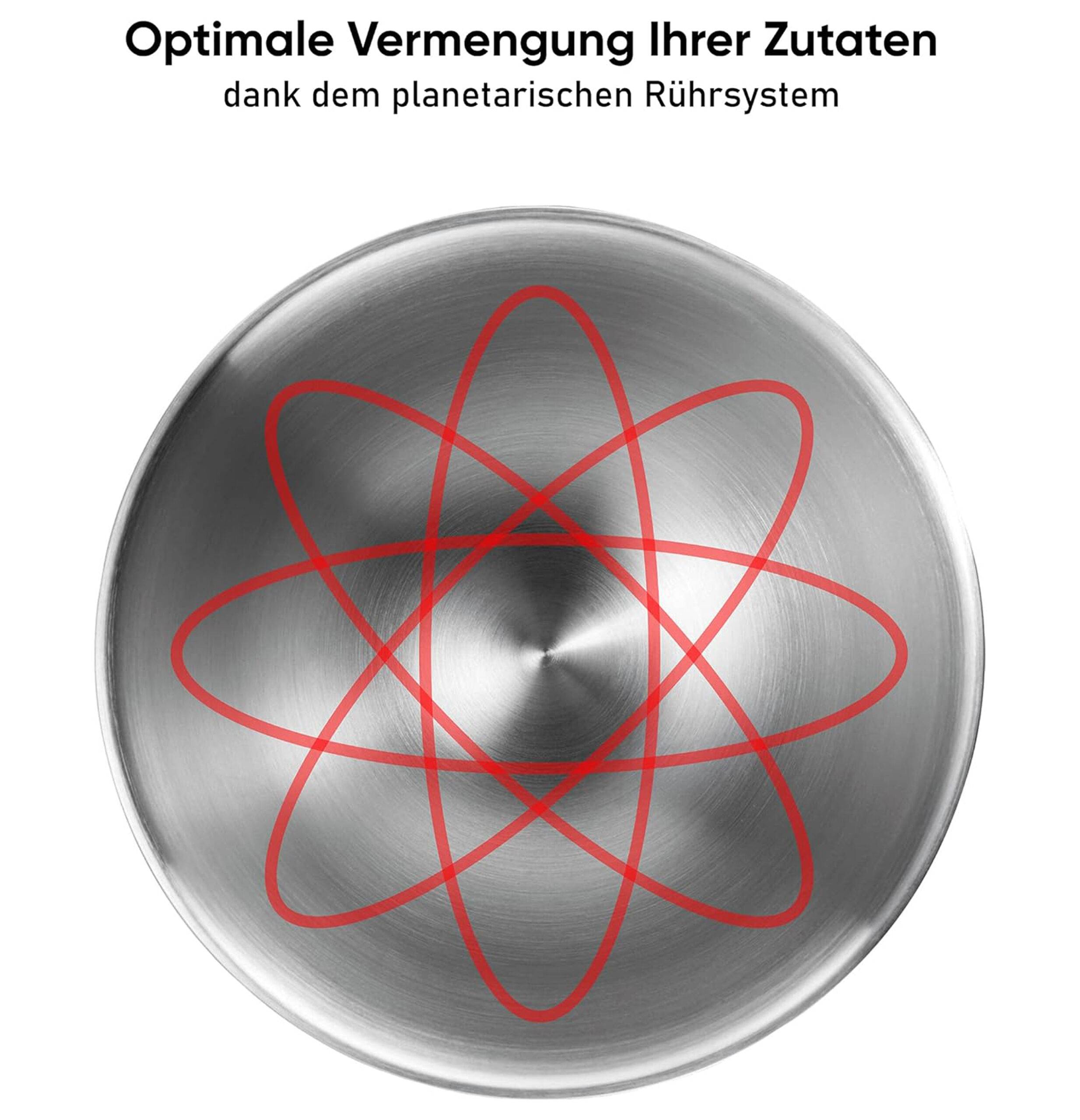 • The die-cast aluminum stirring hook ensures even kneading of even large amounts of dough.