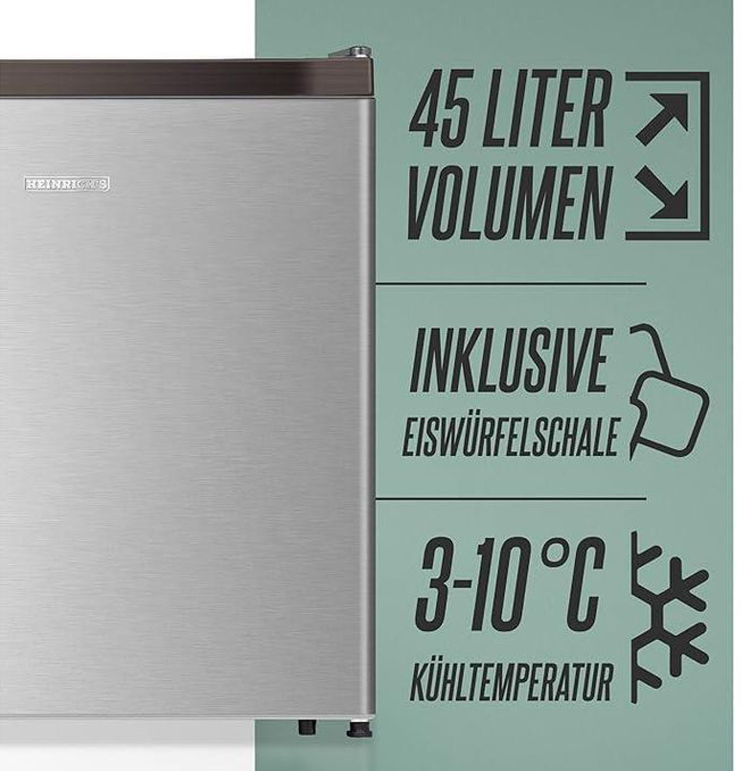 - Heinrichs Drinks Fridge 45 L Small Compact Quiet 41 dB with Freezer Compartment Mini Bar Table Fridge Mini Fridge with Freezer Compartment Perfect for Office Camping Garden Outdoor