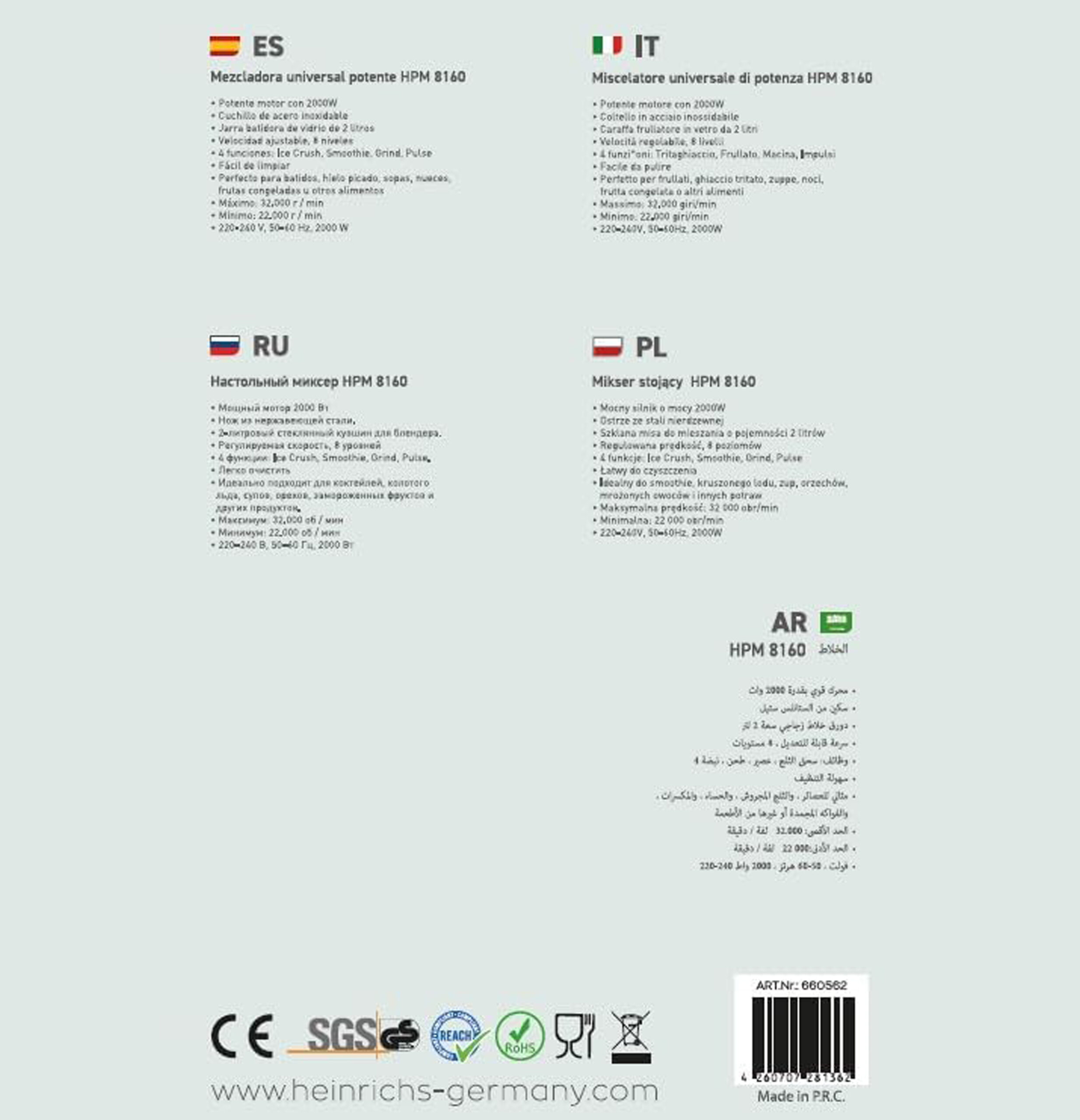 Functions: Perfect for smoothies, juices, baby food, desserts, frozen treats, grinding ingredients, and ice crushing.