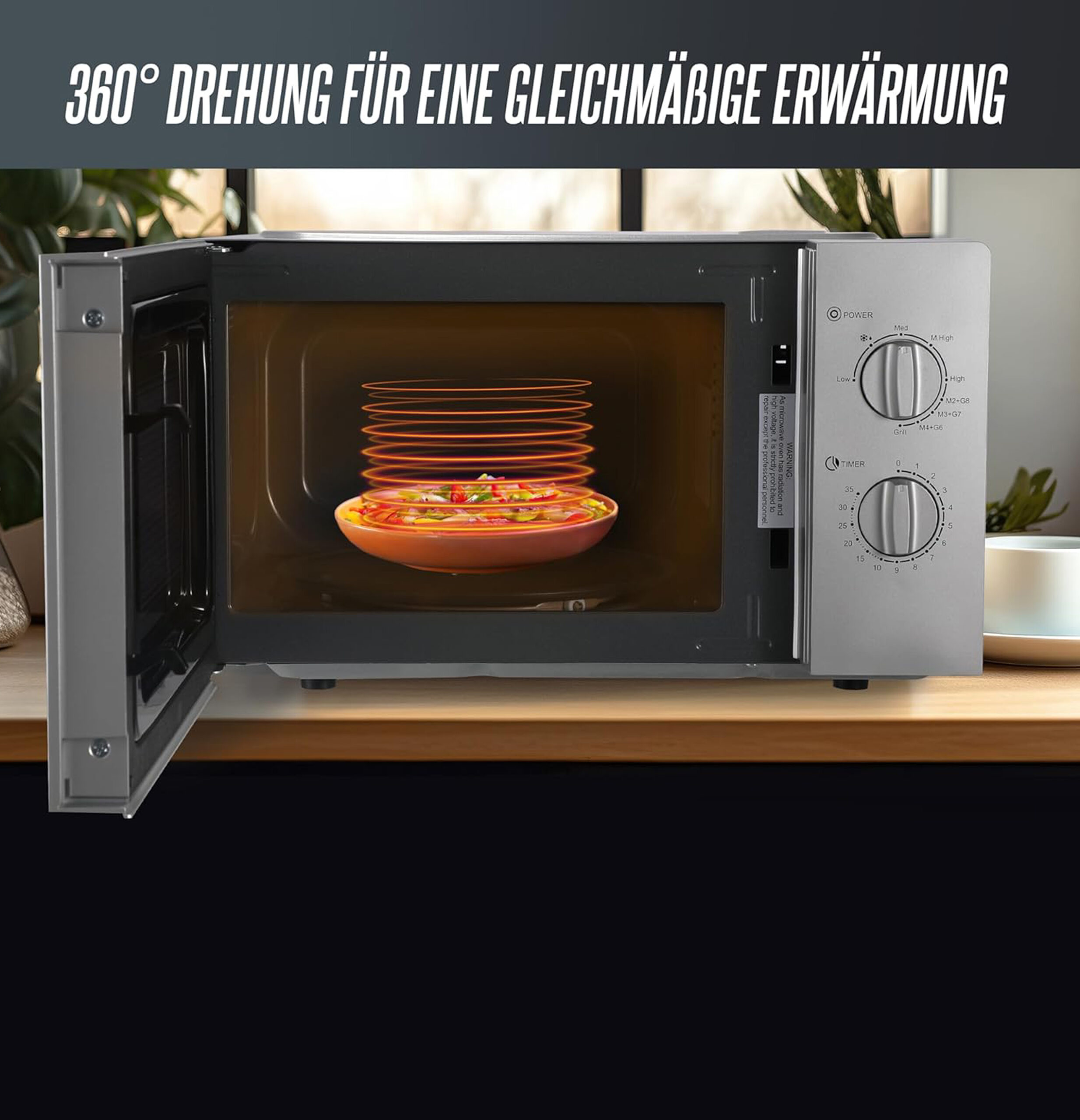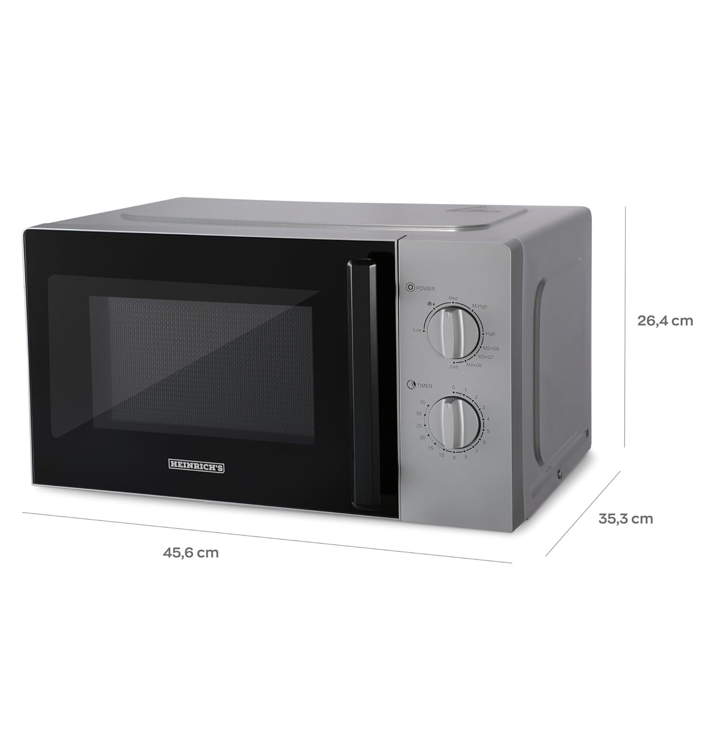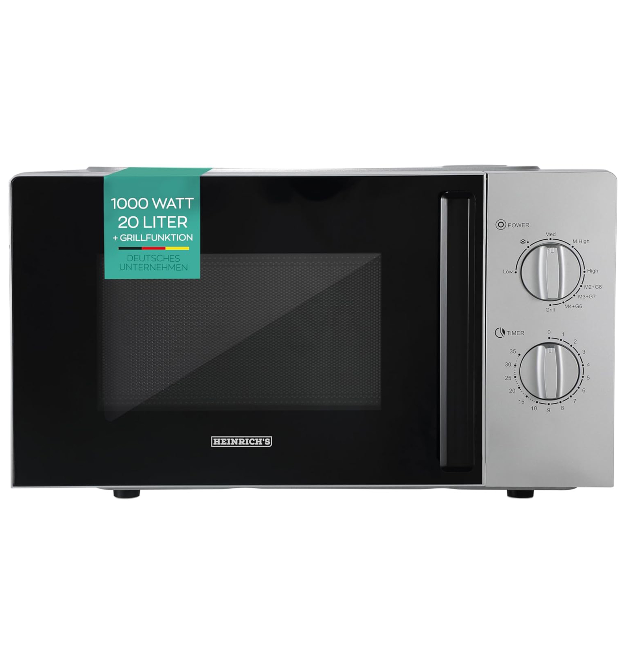 - Powerful – The Heinrich´s HMW 8847 microwave with 1000 W offers enough power to prepare your dishes quickly and easily. On the 360° turntable, your meals are heated evenly to achieve the optimal temperature. A highlight is the microwave with the built-in grill function, which allows you to heat your dishes even faster and thus save a lot of time in everyday life