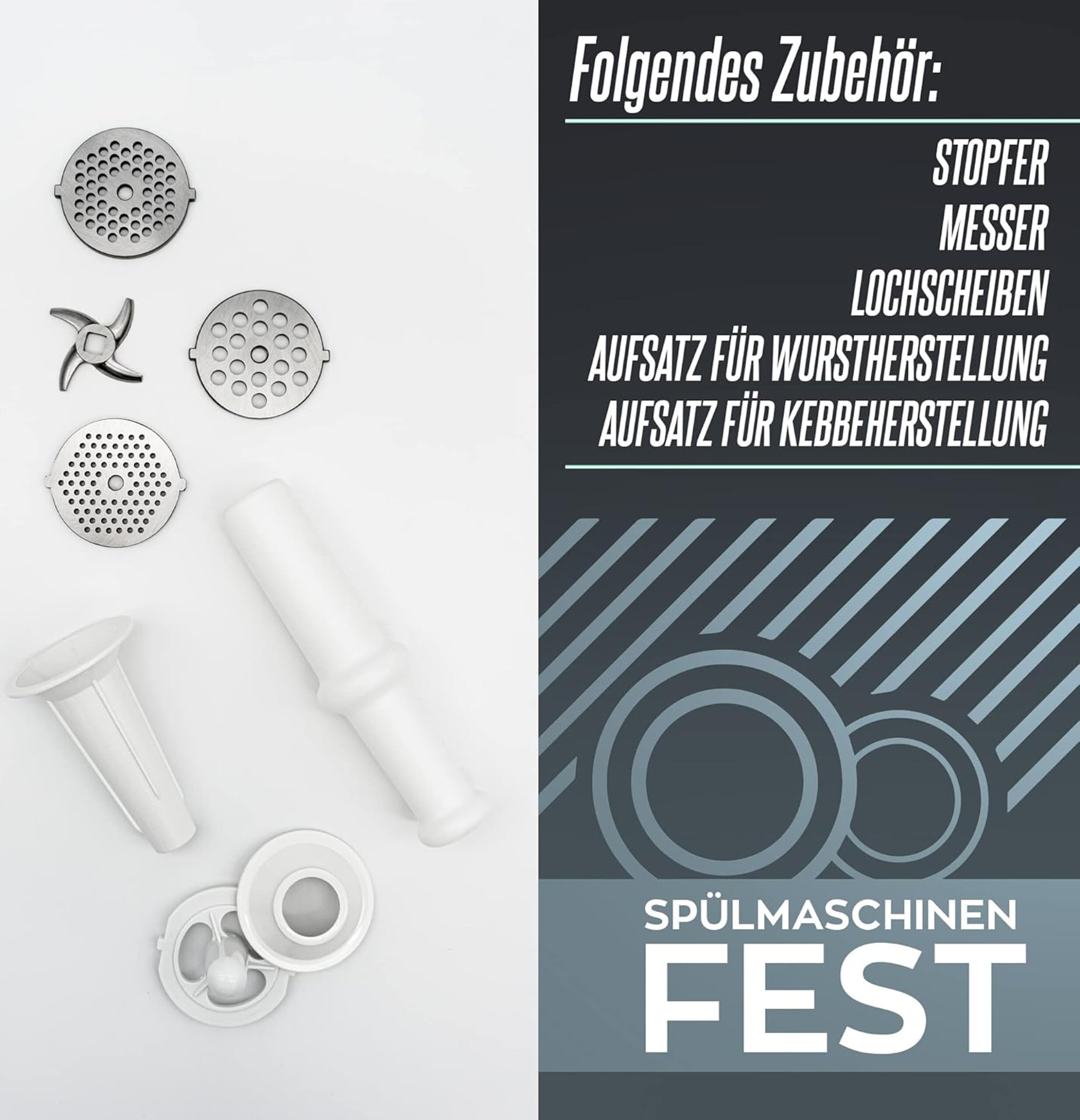 – Fast processing of large quantities of meat (approx. 2 kg/min) thanks to its powerful motor