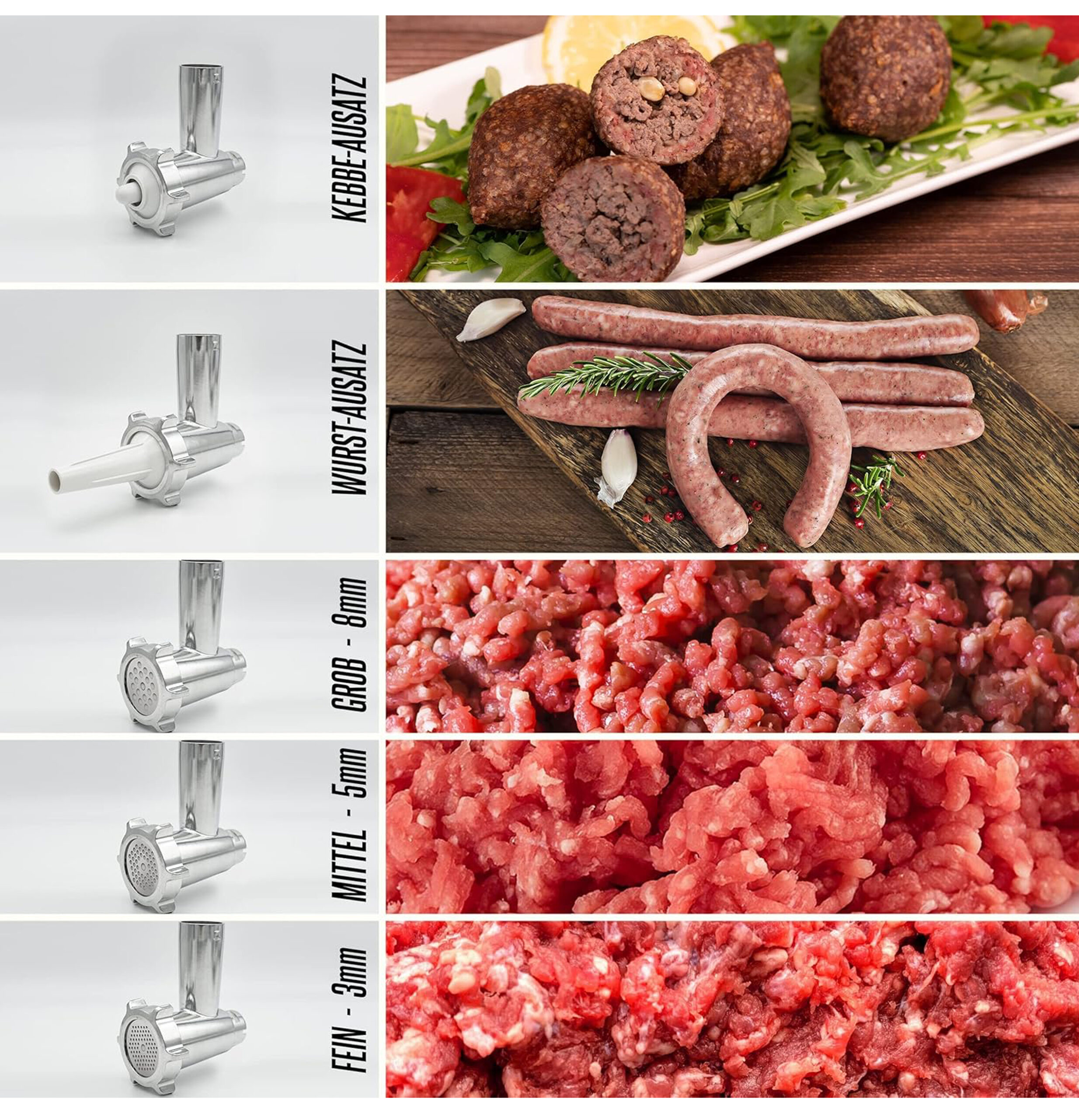 – Possibility of preparing minced meat and fish (tartare), as well as meatballs and sausages