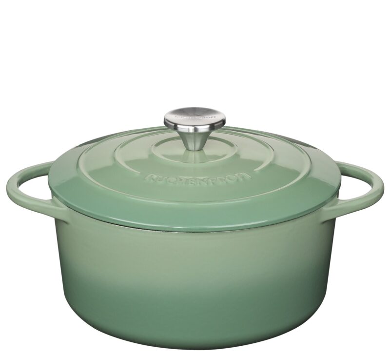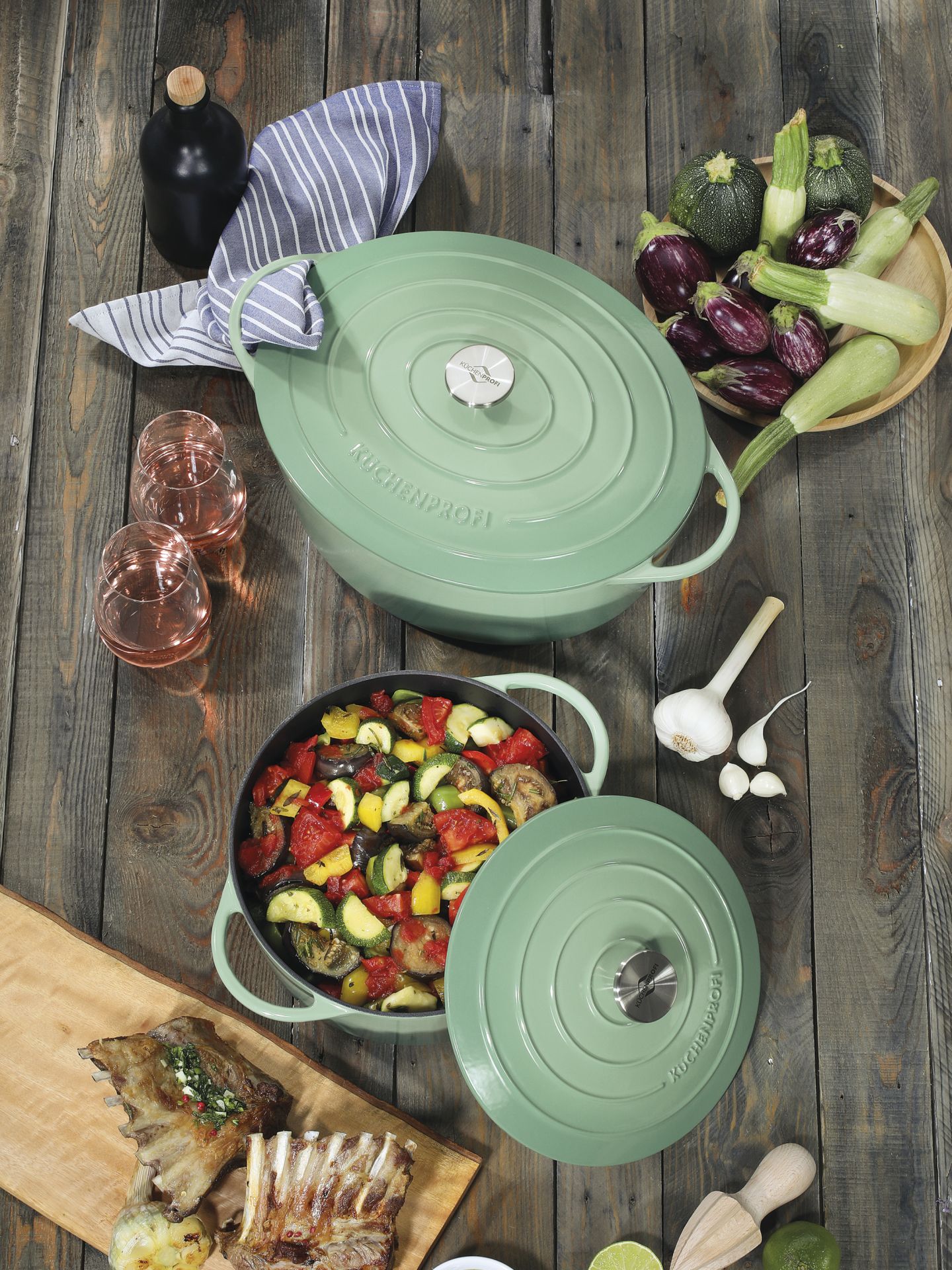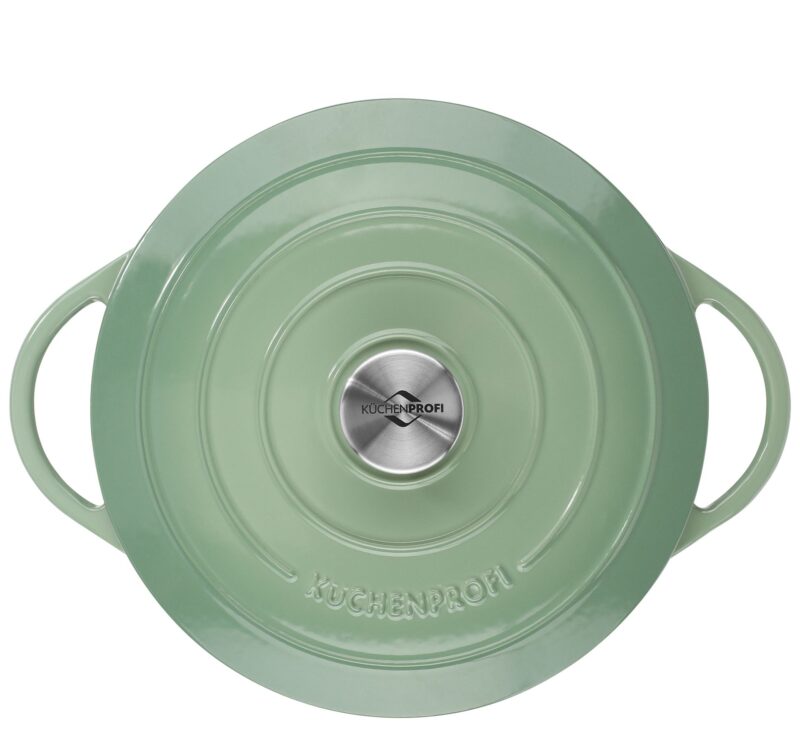 Küchenprofi Cast Iron Roasting Dish with Lid, Round, Jade, 24 cm, Casserole Dish, Dutch Oven, Bread Baking Pot, Enamelled, for All Types of Hobs (including Induction), for Braising, Baking, Roasting 0401000324