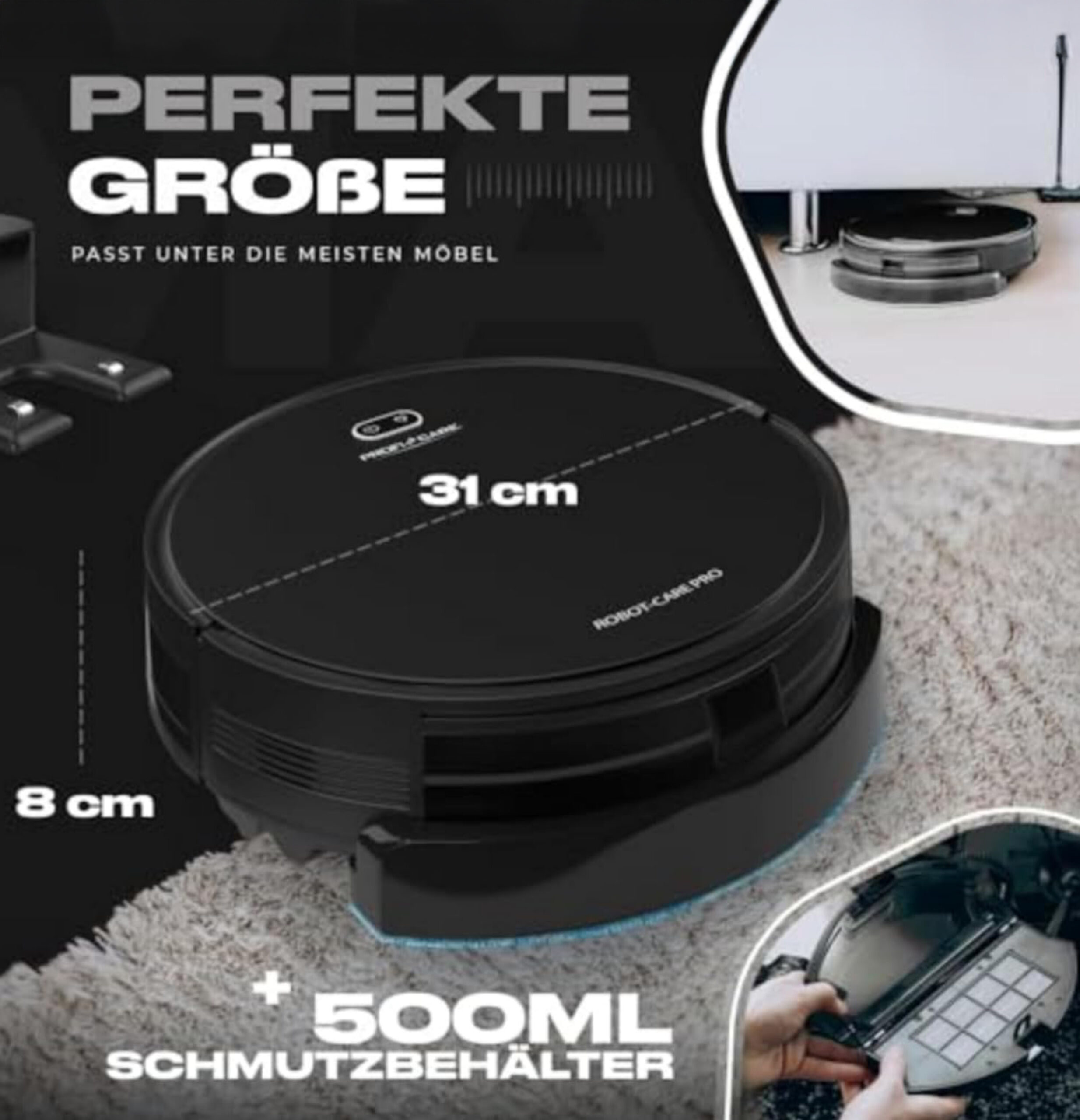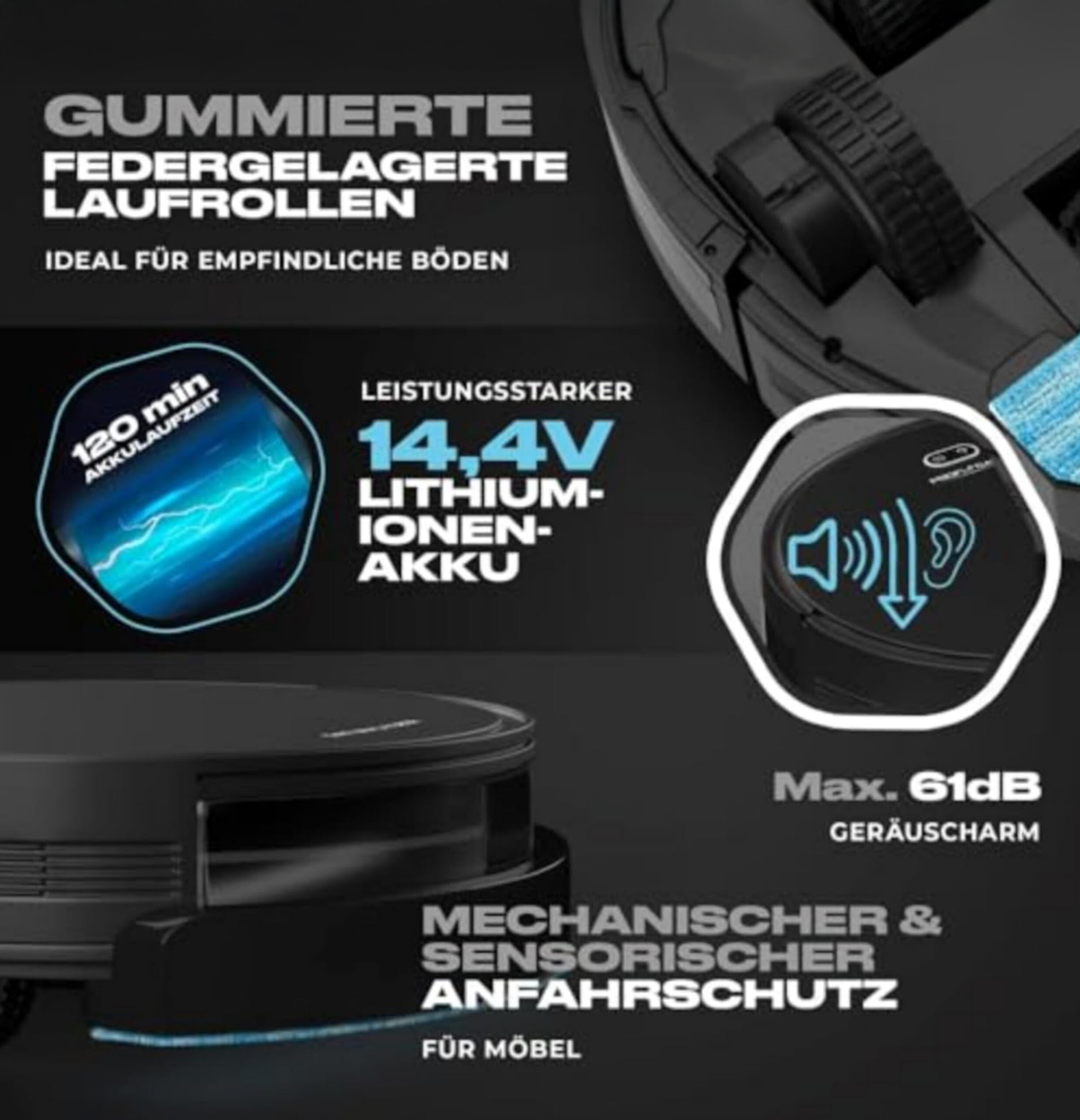 - Efficient cleaning: the 2-in-1 vacuum and mop robot combines a rotating floor brush with a wiping function for thorough, automatic cleaning of all rooms