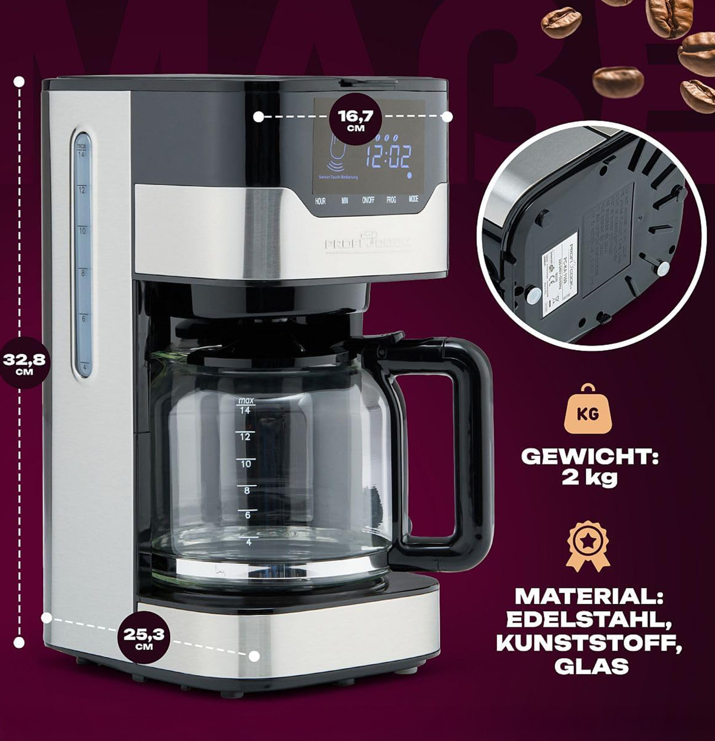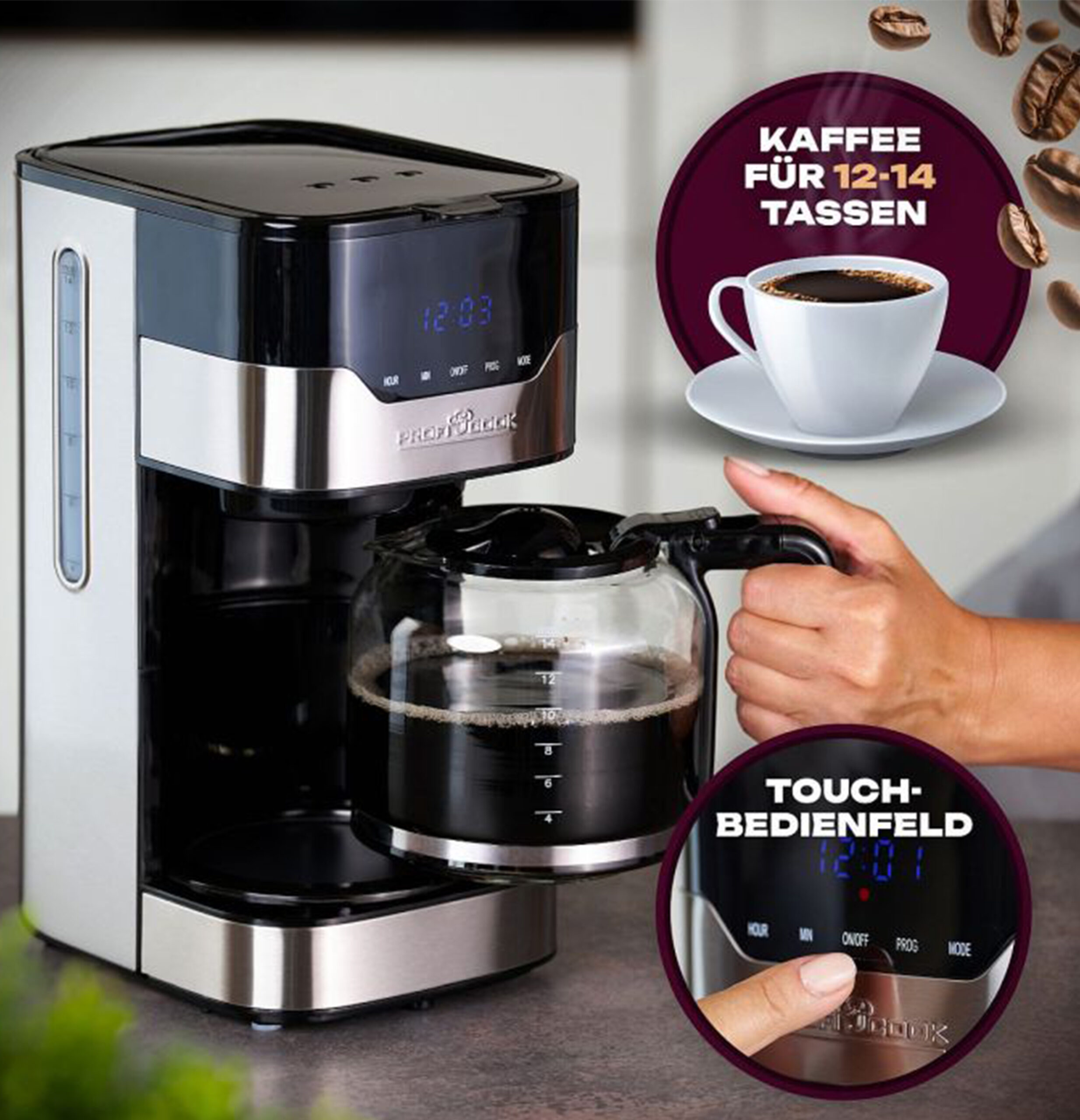 - With the coffee filter machine from ProfiCook you can prepare between 12 -14 cups of the most aromatic coffee – ideal for large coffee groups