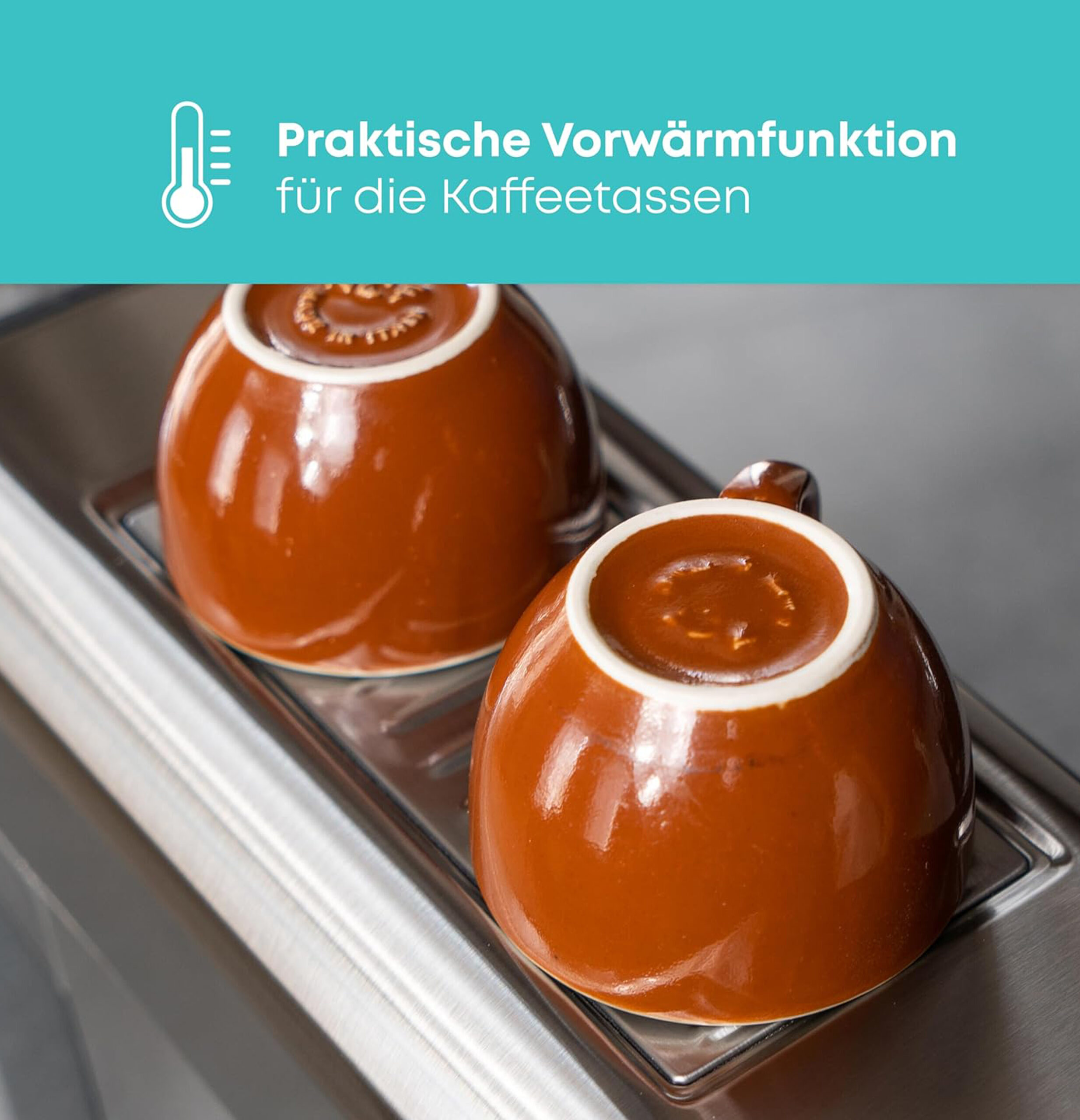 - Barista feeling at home – The cup warming function, illuminated control buttons, and removable water tank (1L) of the coffee machine complete the perfect coffee experience at home