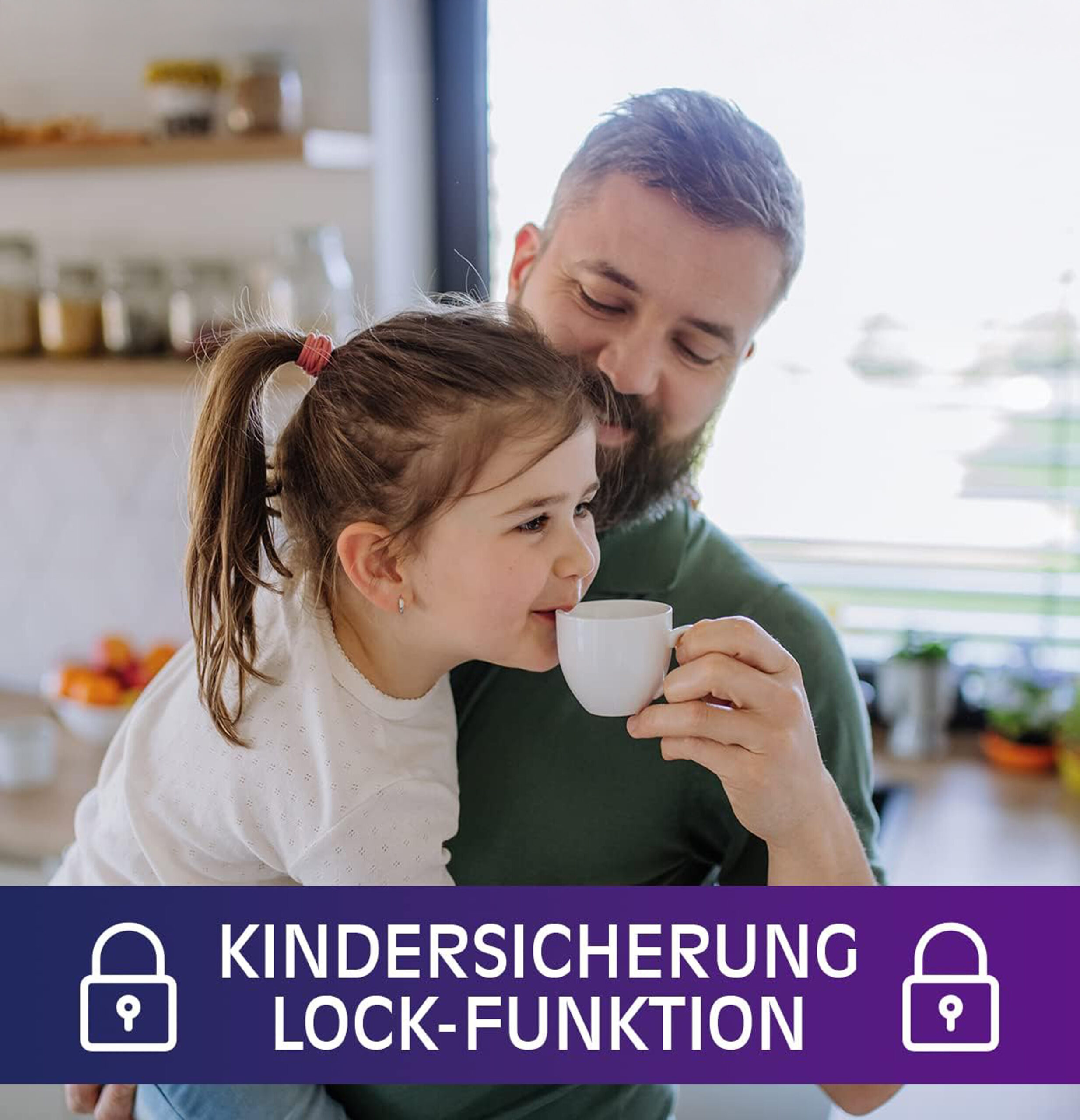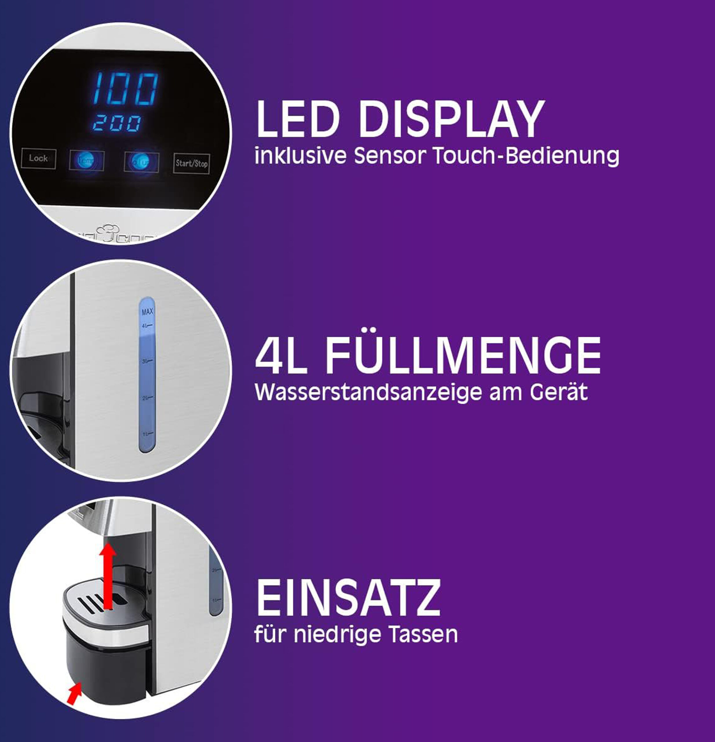 - VERSATILE & MODERN — The blue illuminated LED display with 4 indicator lights informs you about the operating status of the device. Thanks to the sensor touch operation, you can easily set the 5 temperature levels (55°C, 65°C, 75°C, 85°C, 100°C) on the display according to your wishes
