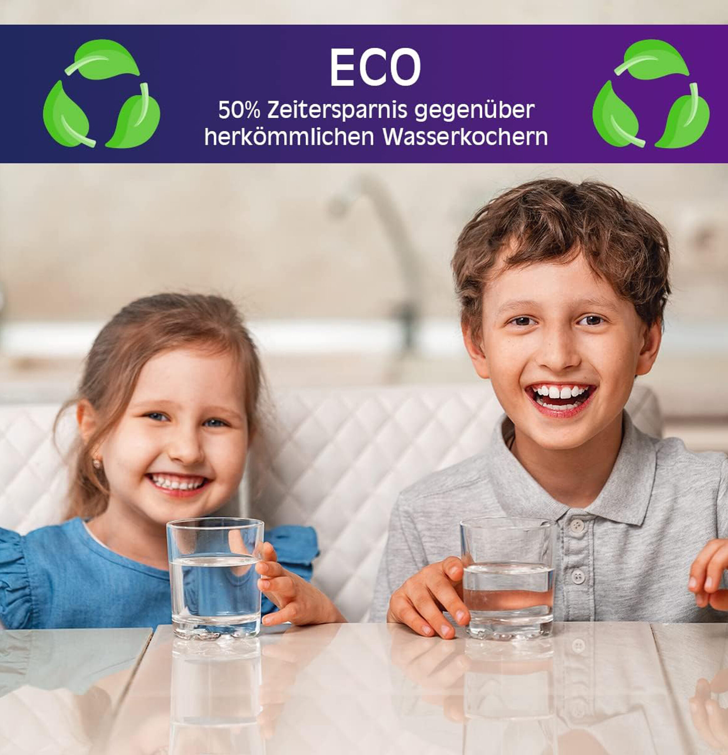 - HIGH SPEED HOT WATER DISPENSER — Get hot water for your fresh tea at the touch of a button and enjoy 50% time savings compared to conventional water dispensers thanks to ECO-Save. The water is heated to 100 °C within 3 seconds.