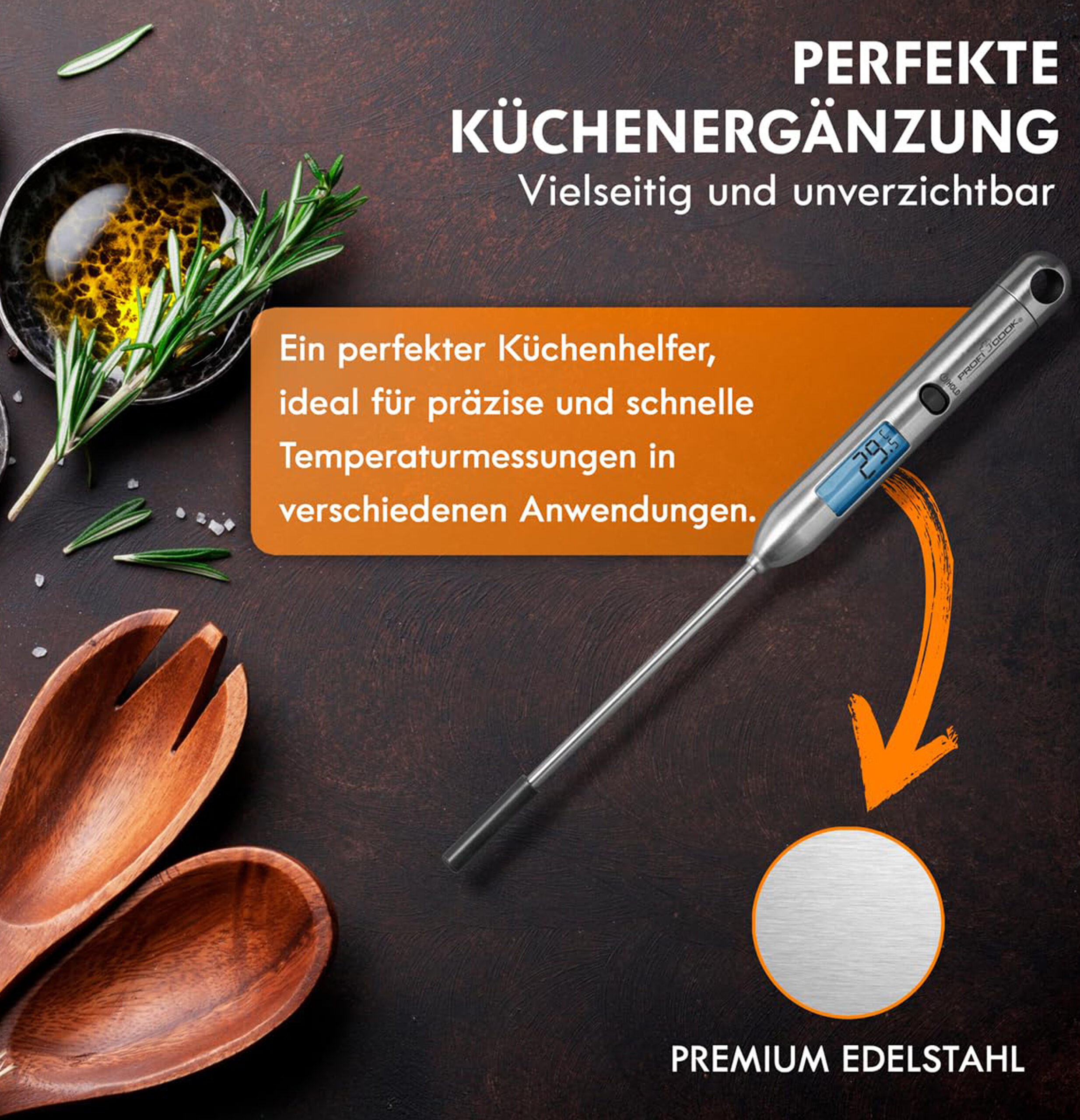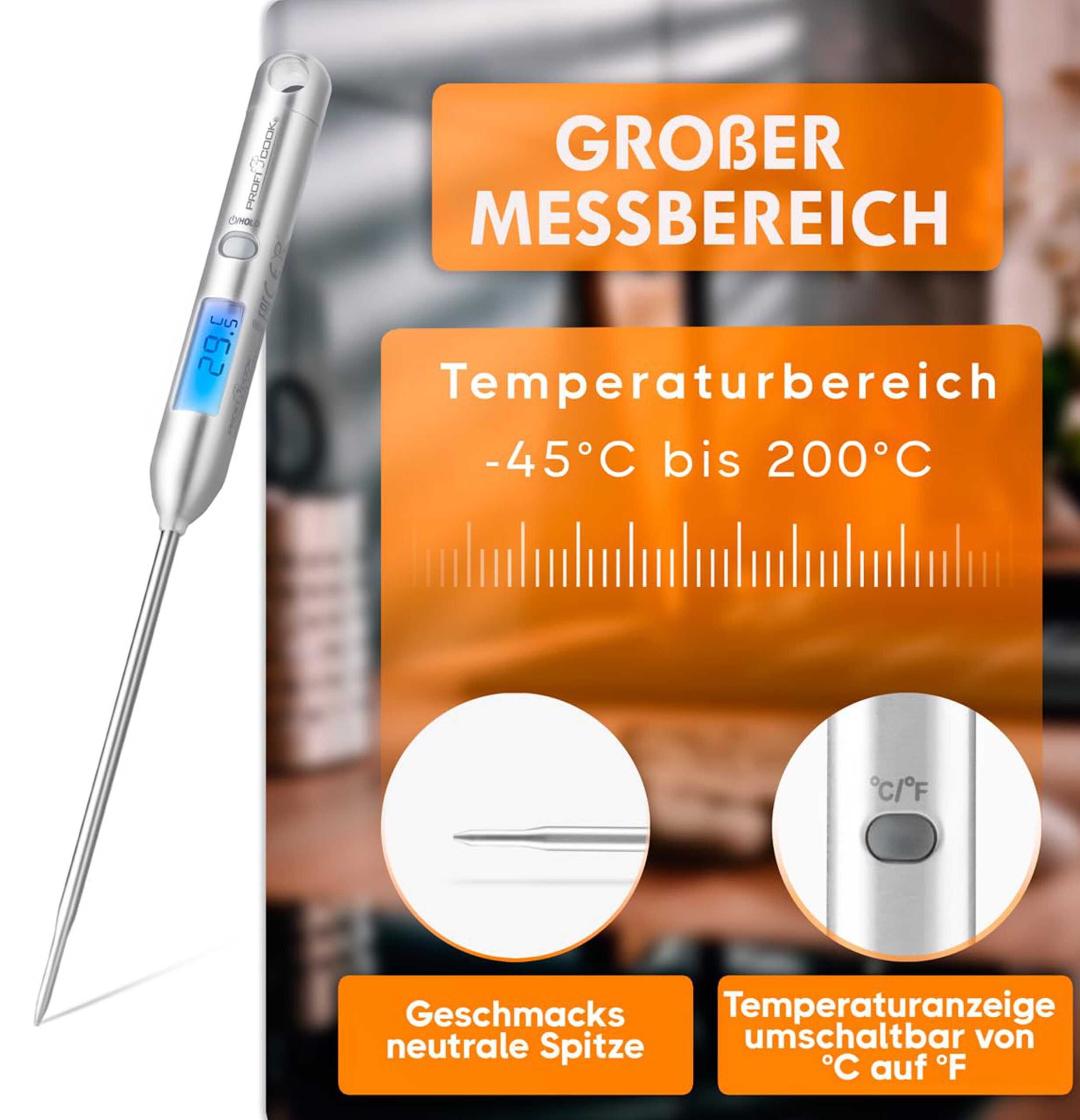 - Kitchen thermometer, ideal for measuring fish, meat, fondue, baby food or much more