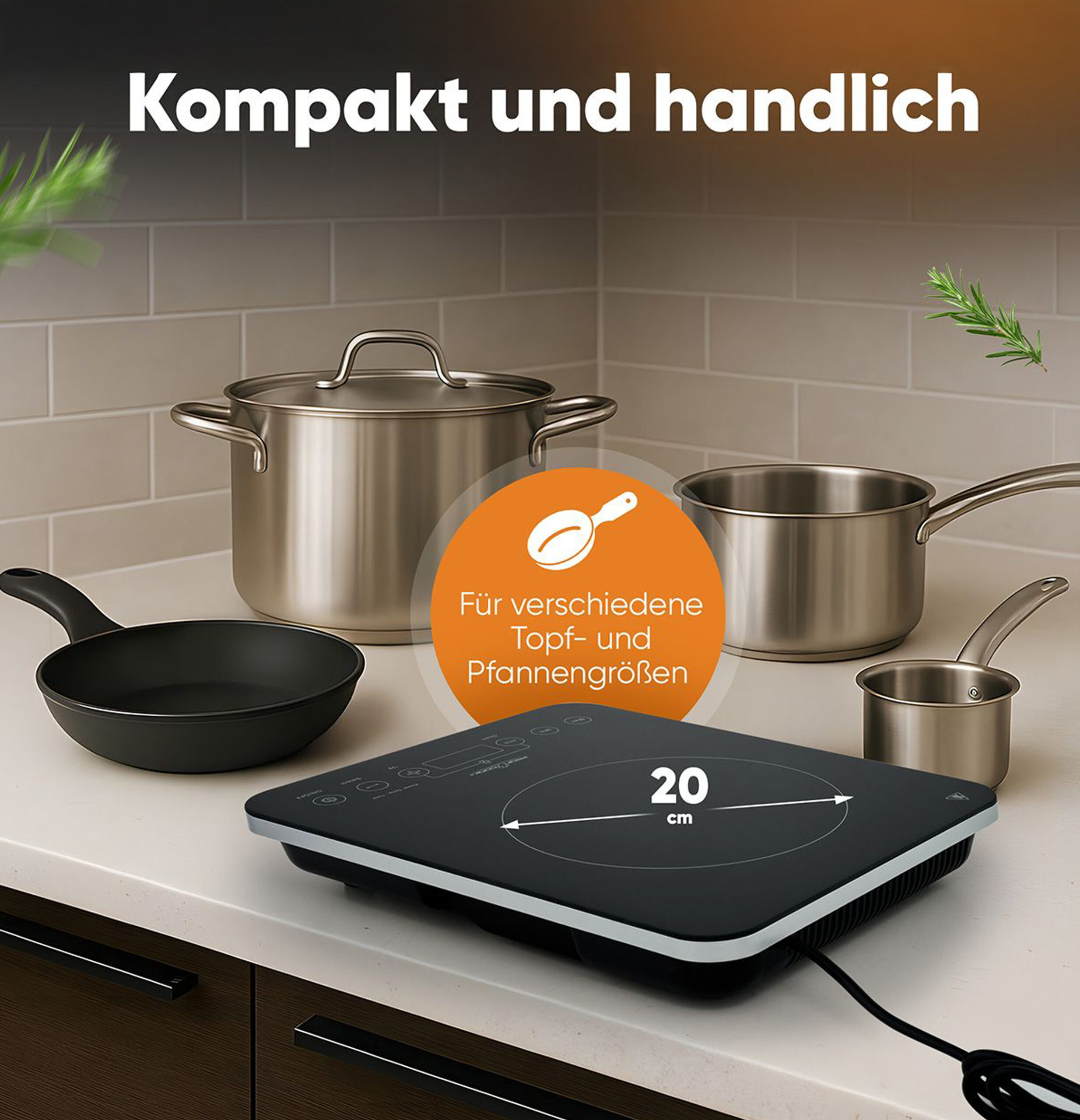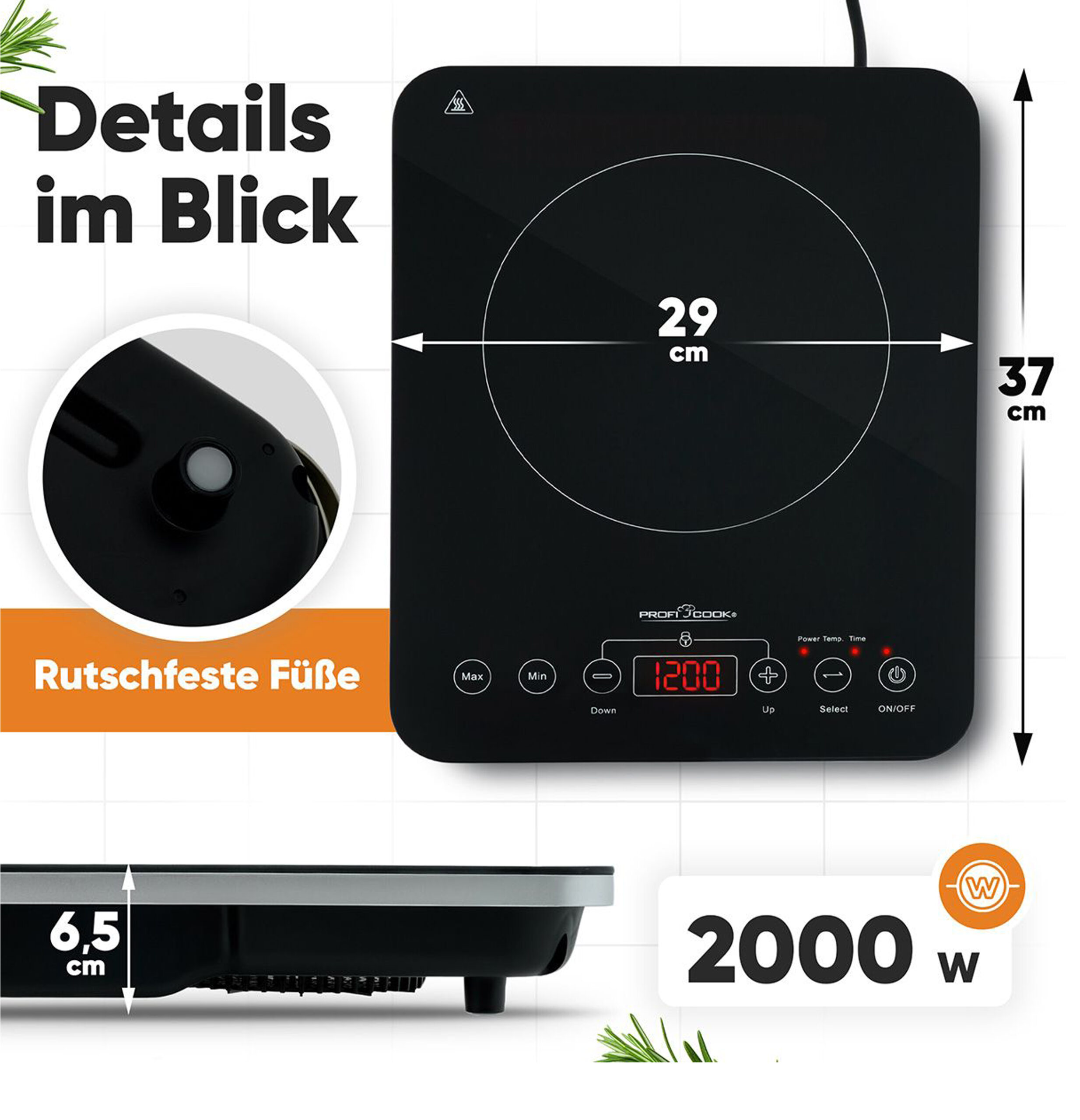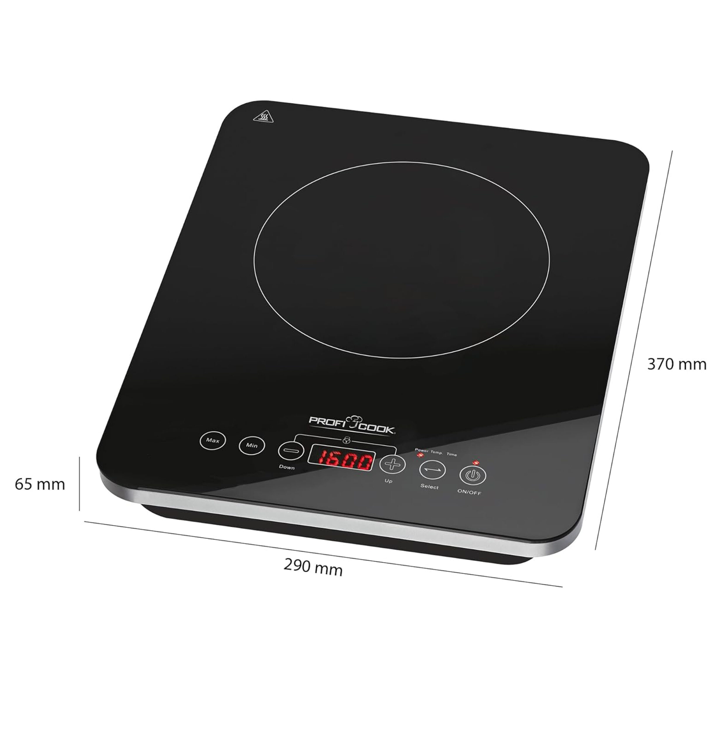 Induction hob with high-quality and environmentally friendly glass-ceramic surface. Smooth and scratch-resistant cooking surface, very easy to clean. Heating in seconds thanks to ECO-Save induction technique. 55% time savings compared to traditional hotplates, no preheating phase, energy saving. Automatic detection of pans – shut-off in case of non-induction cookers. temperature levels with LED display (60 C – 240 C). Electronic sensor-touch control panel with display for comfortable use. 3 LED control indicators. 180 min timer with automatic shut-off and end cooking signal. Countdown display. Automatic shut-off after 120 minutes without handling. Automatic shut-off when cooked after removing the pan. Child safe. High stability thanks to non-slip feet. overheating 2200 -240 V, 50/60 Hz, 2000 W.