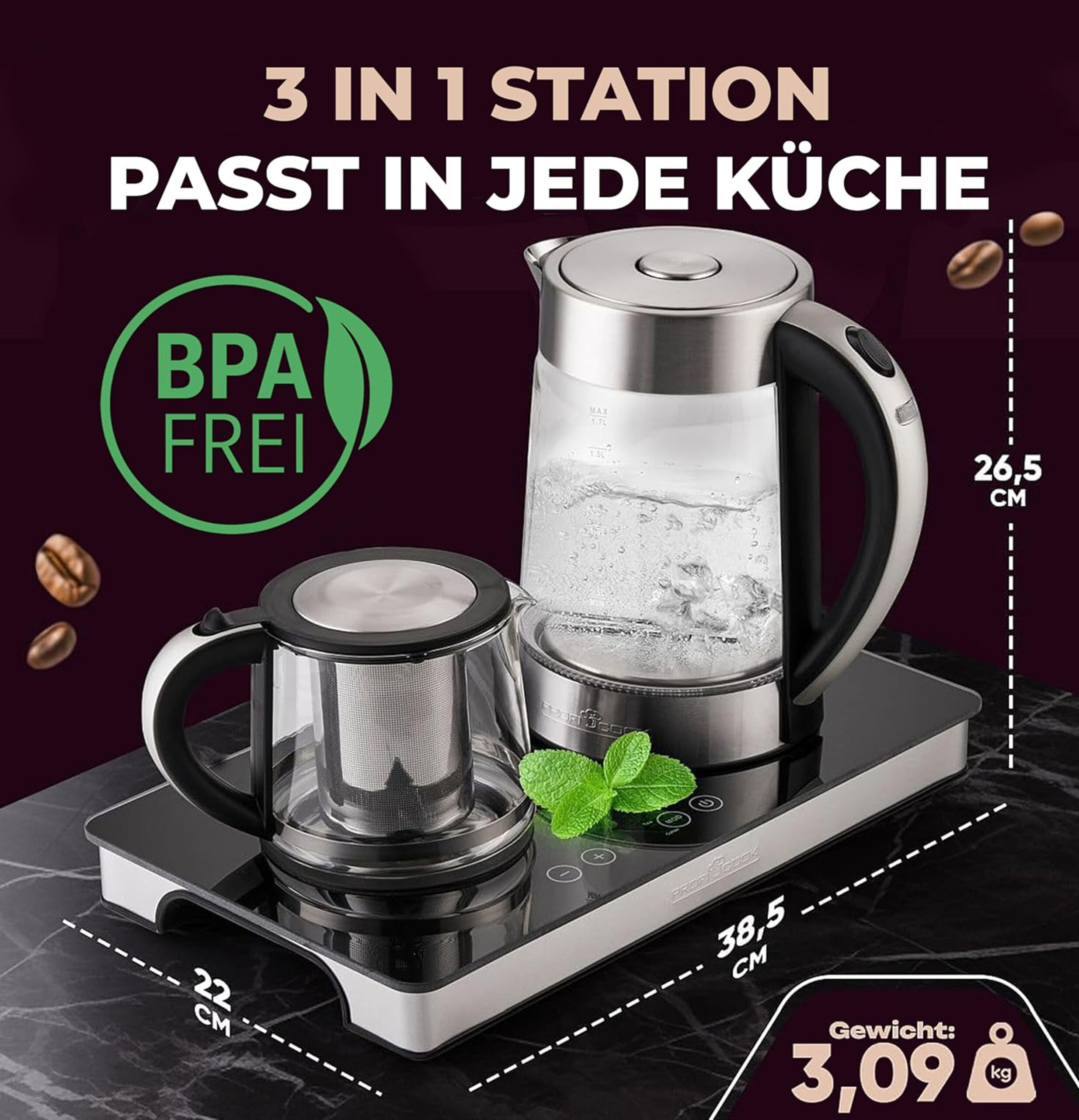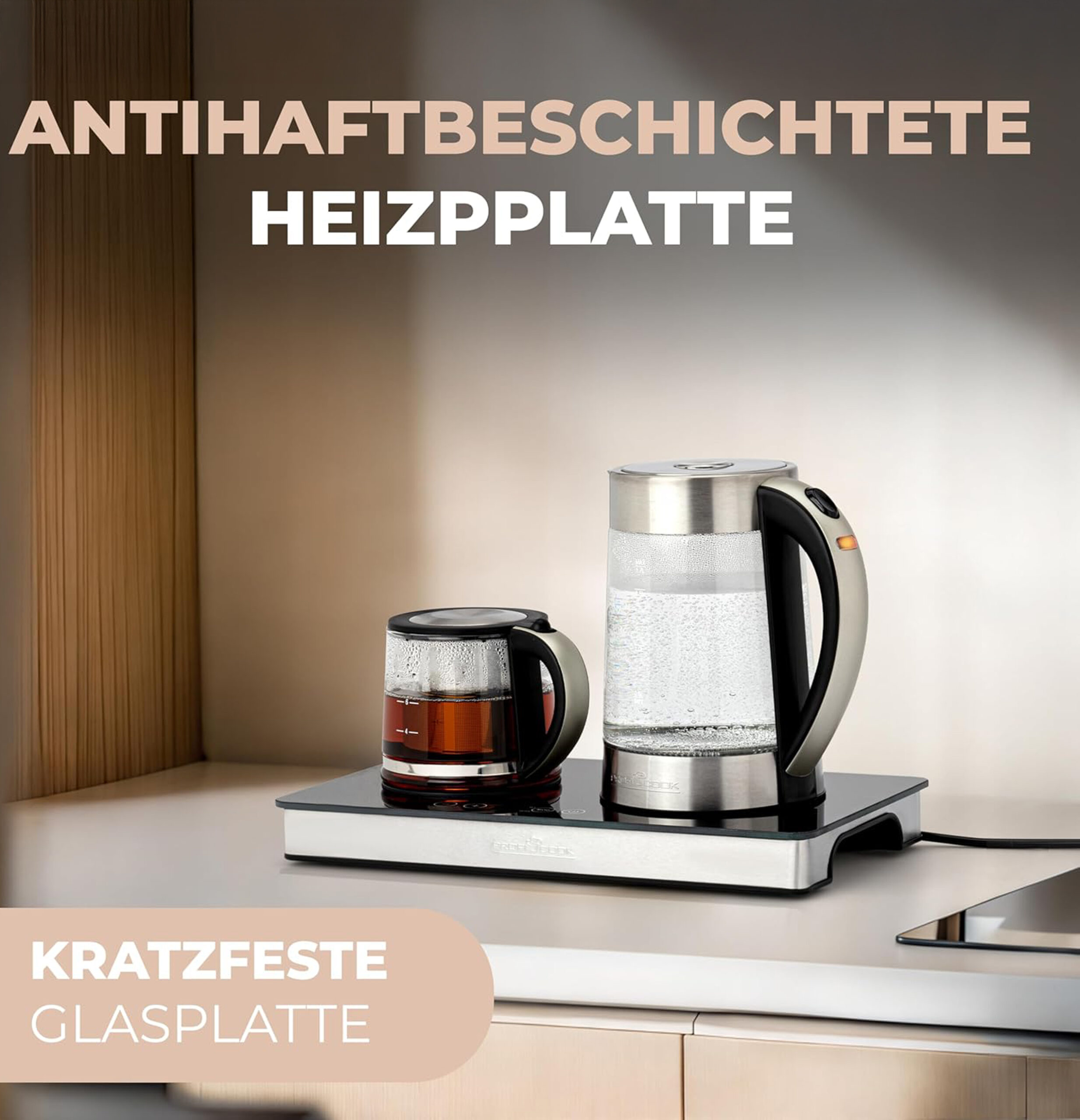 - Tea/coffee stWith a capacity of up to 1.7 litres, the kettle can boil a large amount of water quickly and easily and the glass jug of 0.8 litres is perfect for preparing coffee and teaation