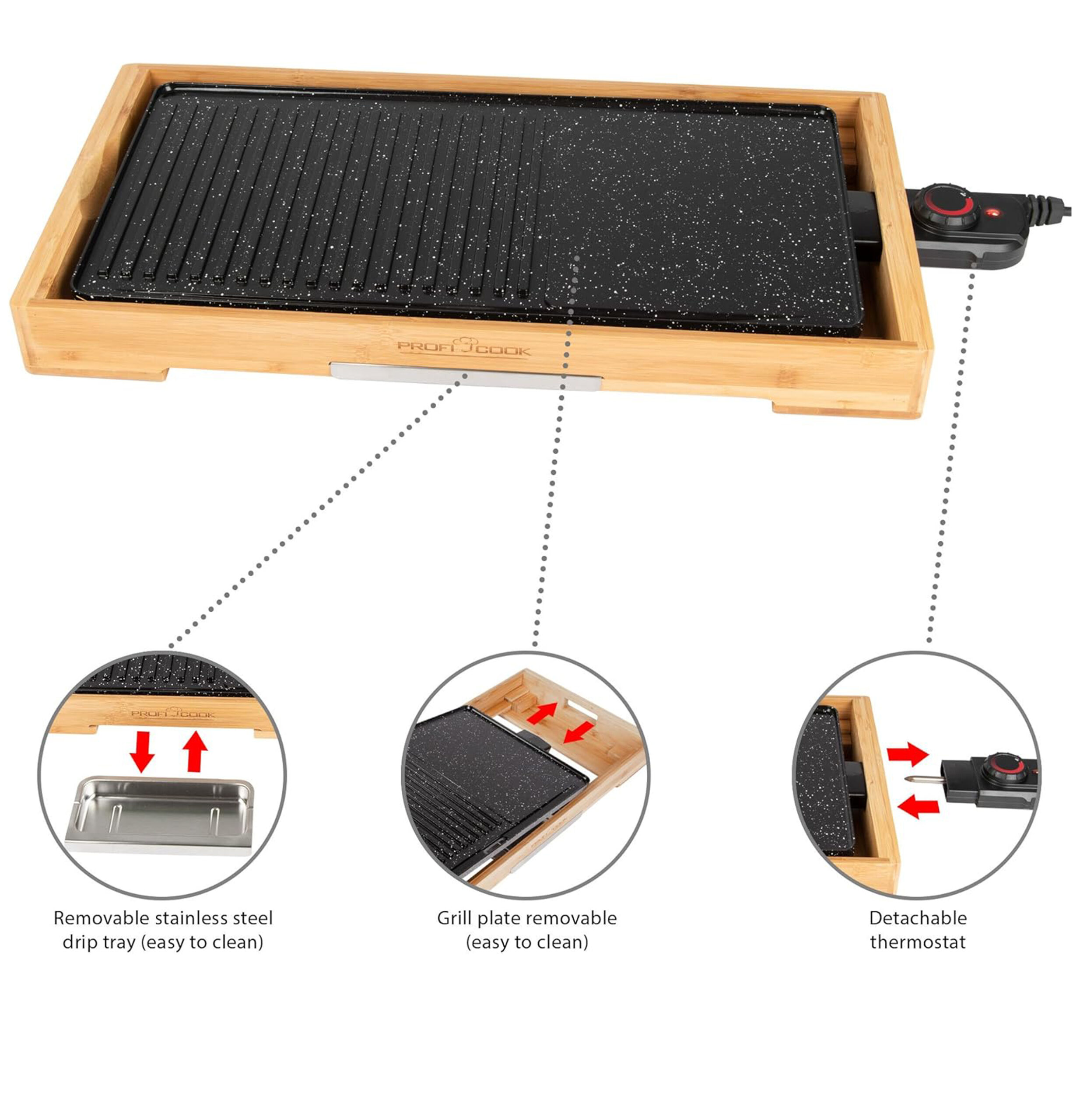 – Scratch-resistant, ceramic coated grill plate – retains and distributes the heat perfectly
