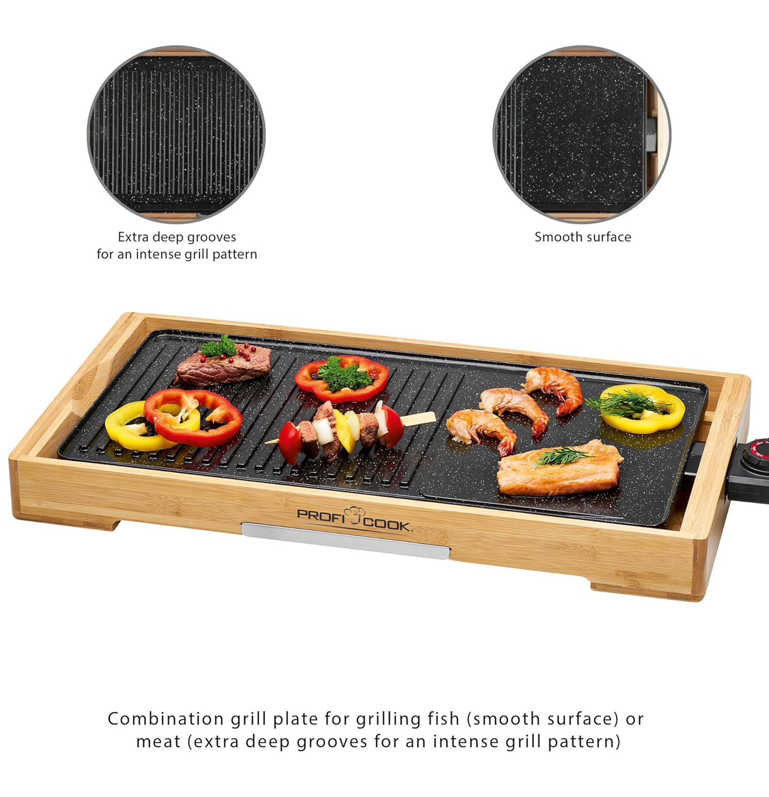 – Combination grill plate for grilling fish (smooth surface) or meat (extra deep grooves for an intense grill pattern)