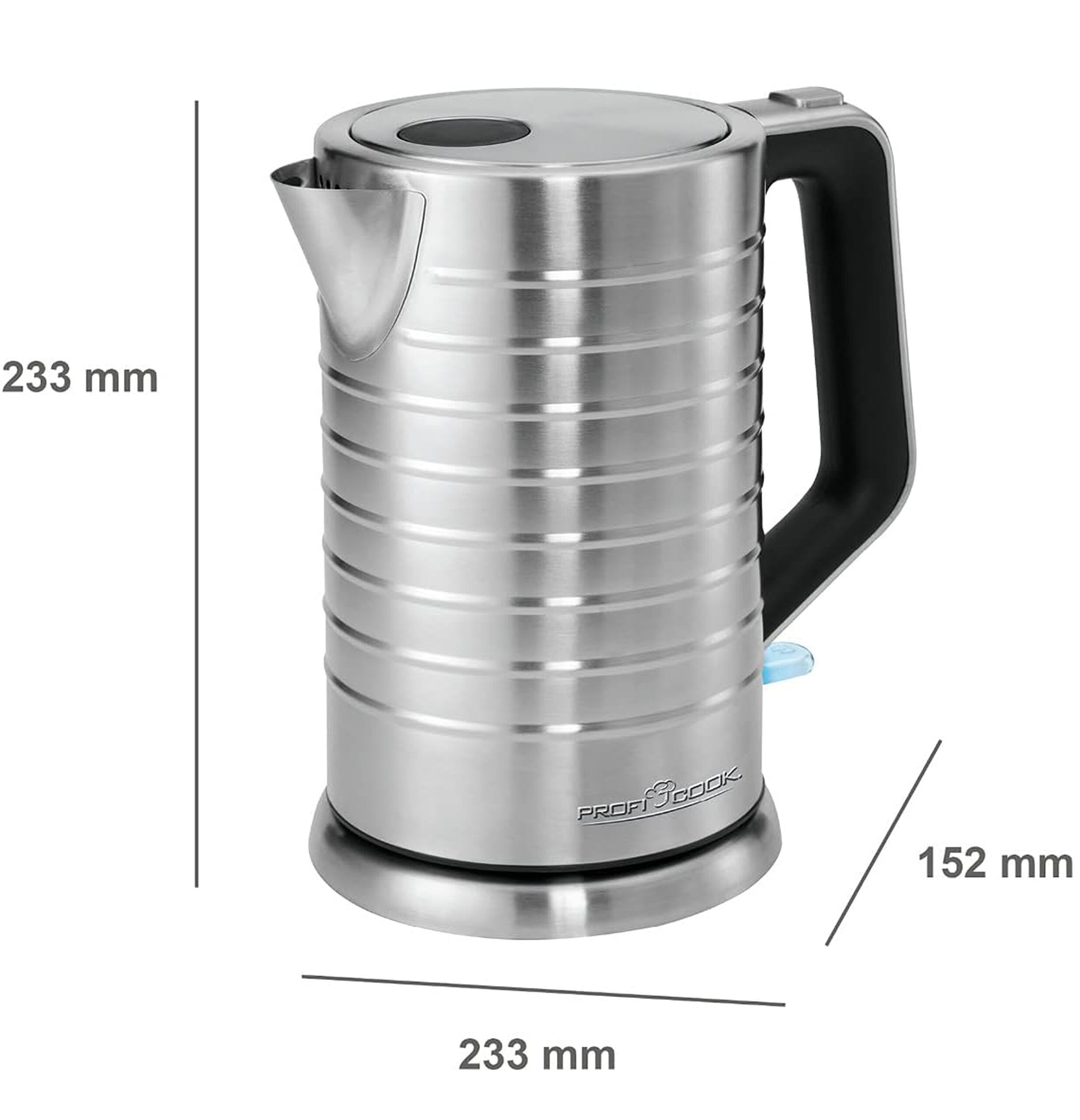 - Modern and functional: the kettle from ProfiCook with its high-quality stainless steel housing impresses with its state-of-the-art design and top performance.